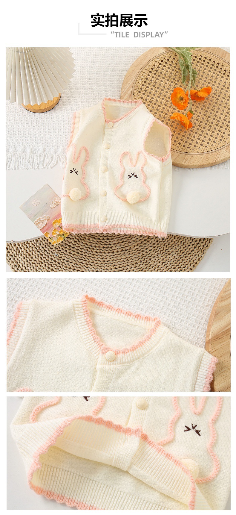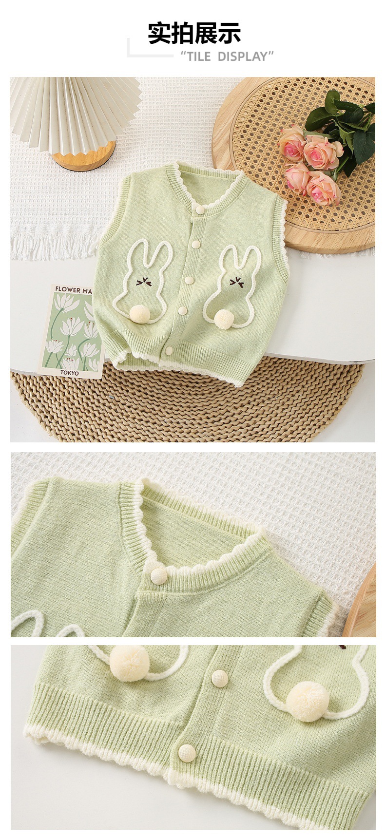 소녀 니트 조끼 어린이 봄과 가을 새 스웨터 카디건 얇은 외부 착용 토끼 왁스 코트 아기스토어 가기