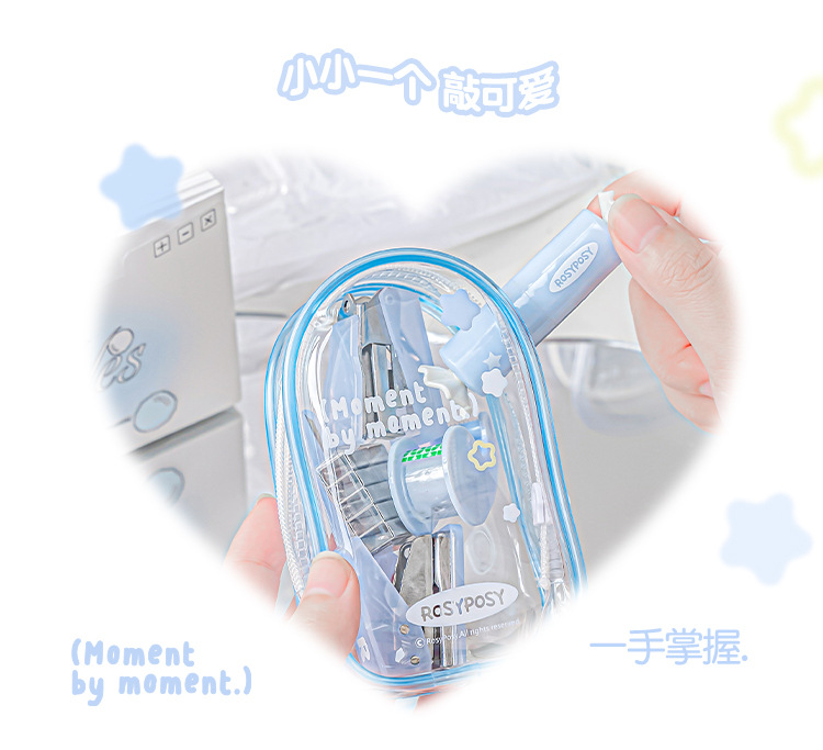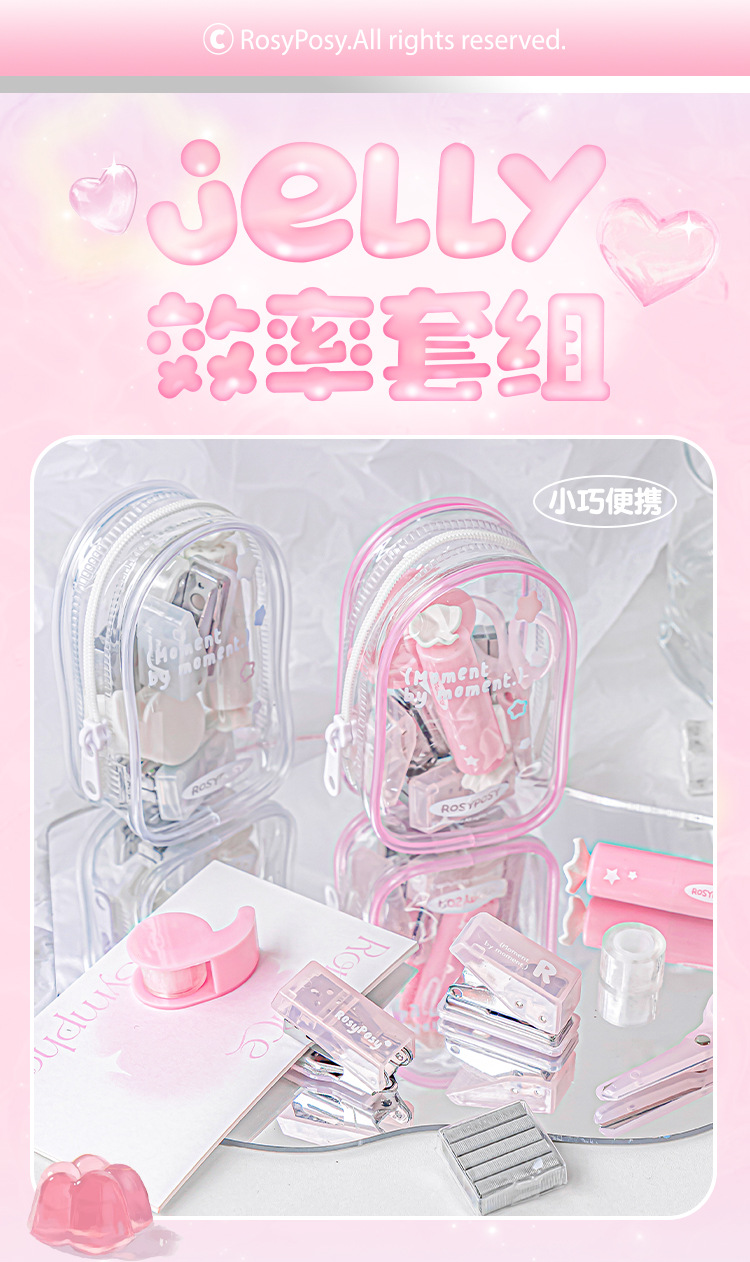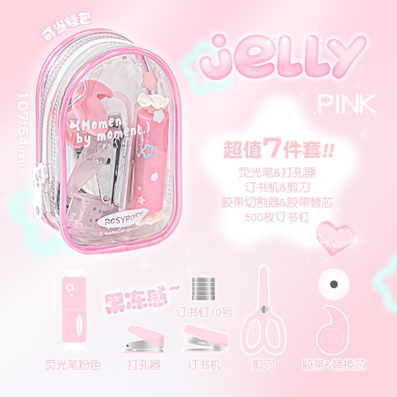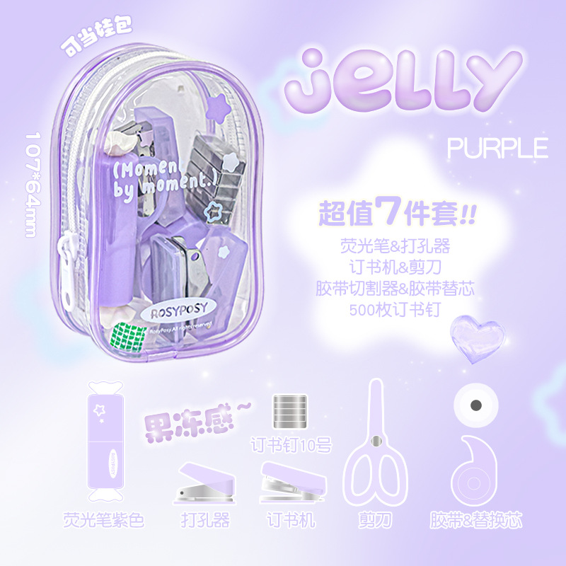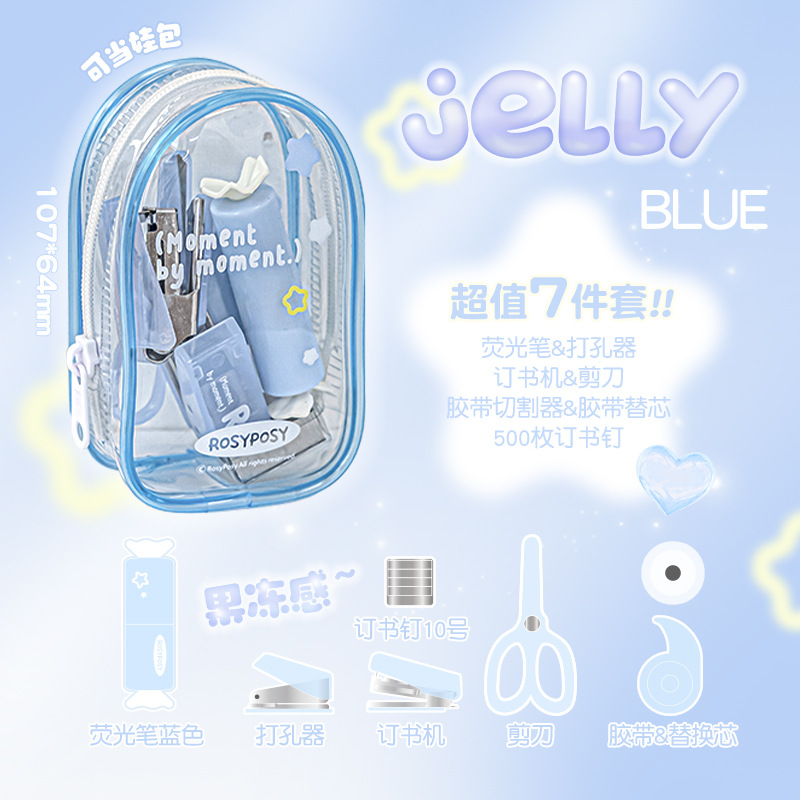 RosyPosy 유연한 젤리 효율 세트 명확한 휴대용 구멍 펀처 스테이플러 가위 도구 세트스토어 가기