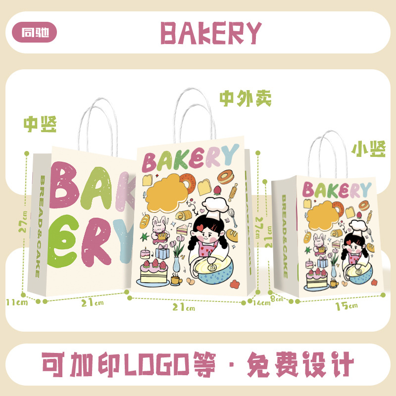 크리스마스와 새해를 위한 크래프트 종이 포장 가방, 케이크 가게용 손잡이 가방, 식품, 빵, 베이킹 선물 가방, 로고 인쇄 가능