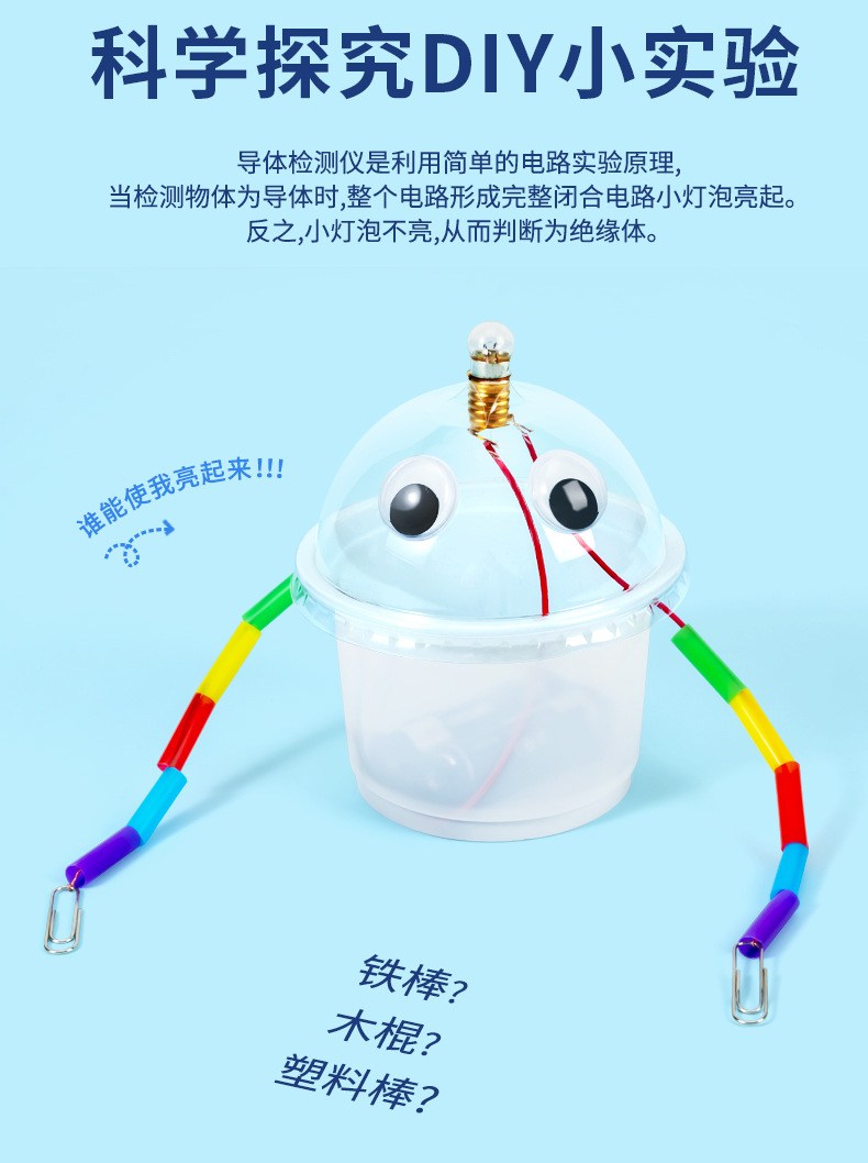 과학 실험 diy 지휘자 탐지기 기술 작은 생산 어린이 수동 물리적 도체 절연체 재료 패키지