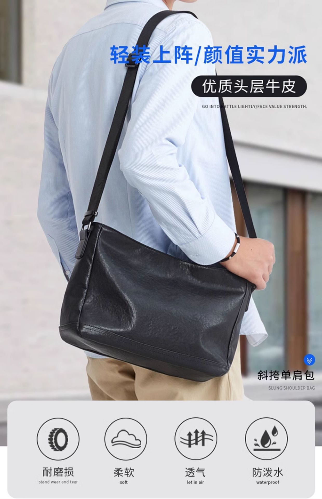 야채 검게 한 가죽 가방 남성 어깨 크로스 바디 백 2023 새로운 패션 소프트 Cowhide 백 고급 통근 캐주얼 가방스토어 가기