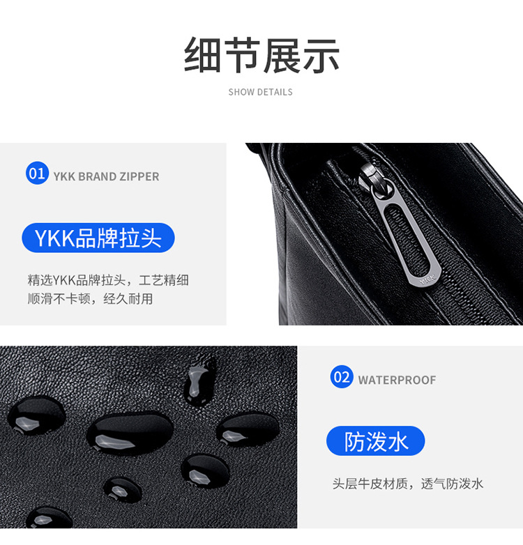 야채 검게 한 가죽 가방 남성 어깨 크로스 바디 백 2023 새로운 패션 소프트 Cowhide 백 고급 통근 캐주얼 가방