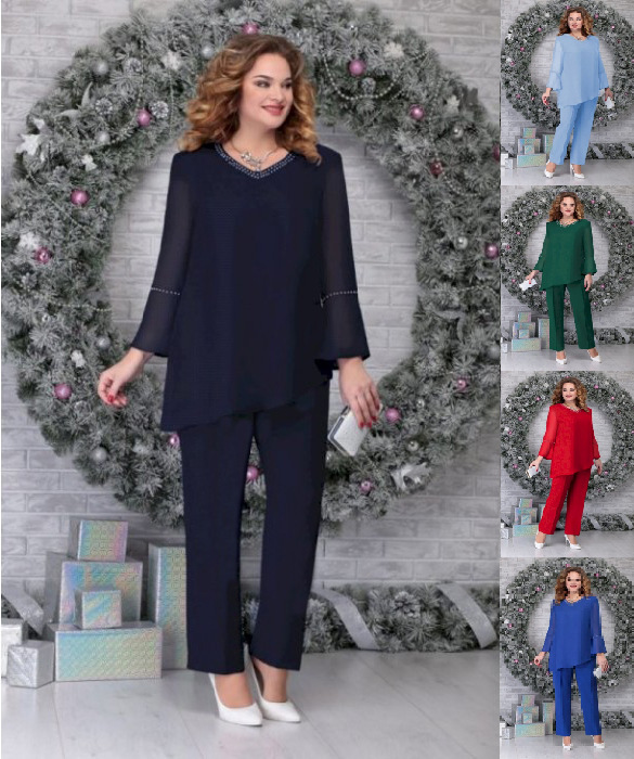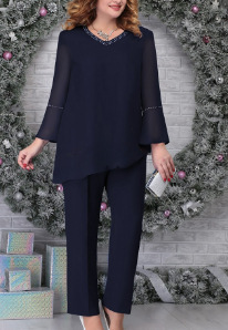 빅사이즈 여성복 유럽 및 미국 신상 바지 세트 빅사이즈 여성복 이브닝 드레스 고급스러운 큐빅 장식 2피스 세트 우아한 출근룩