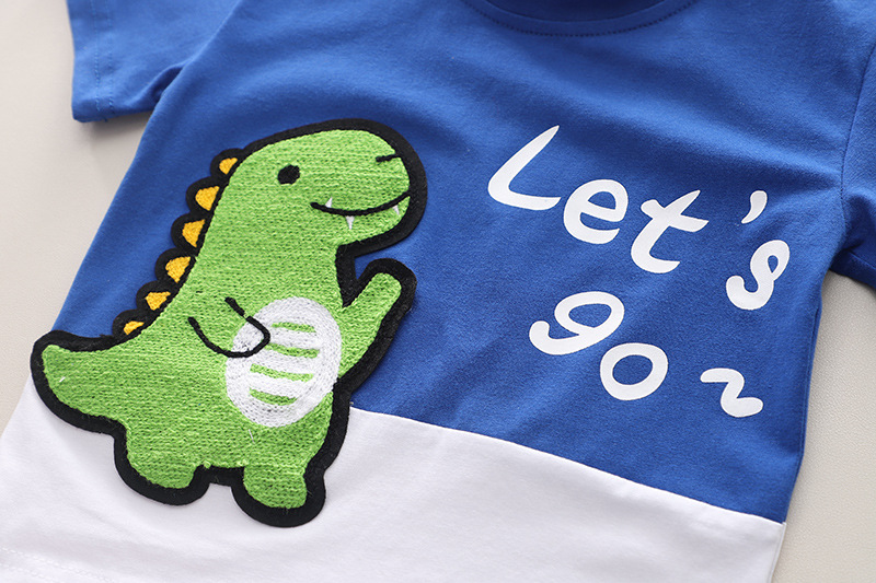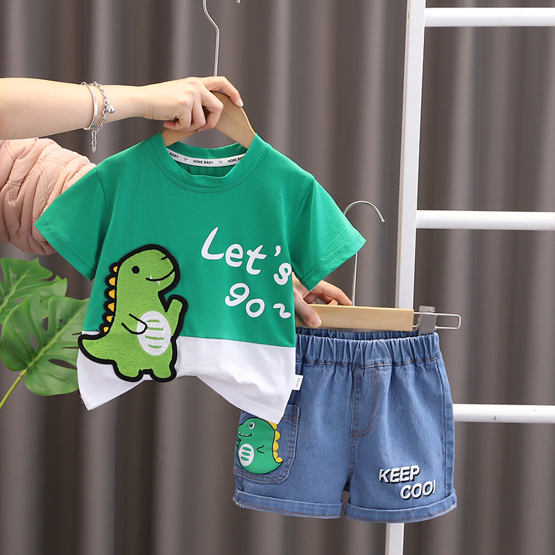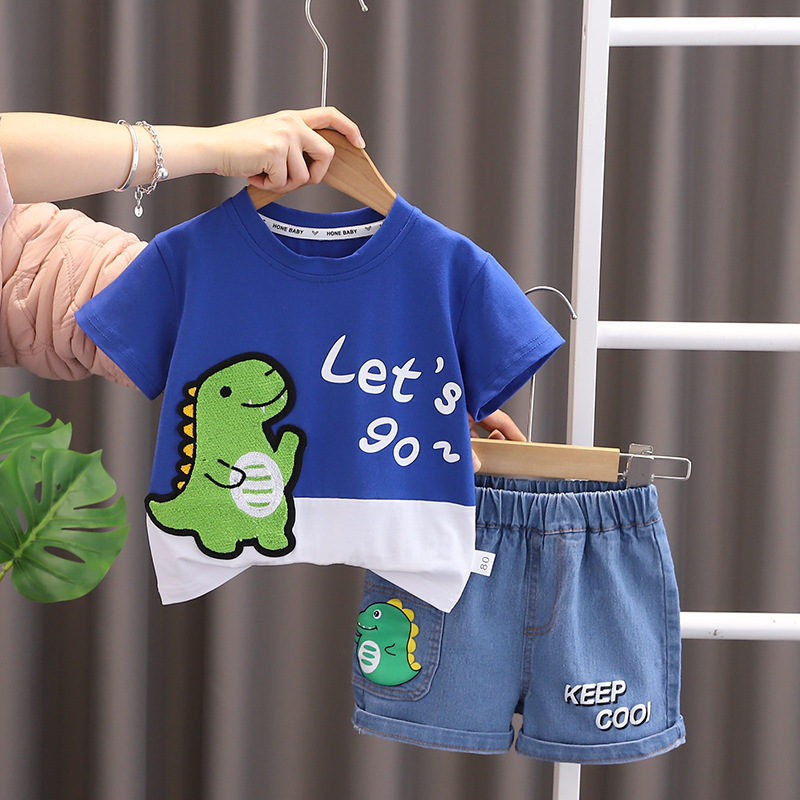 남자들의 반소매 여름 세트 여름 새 아기의 서양식 얇은 아기 편지 공룡 반팔 투피스 세트스토어 가기