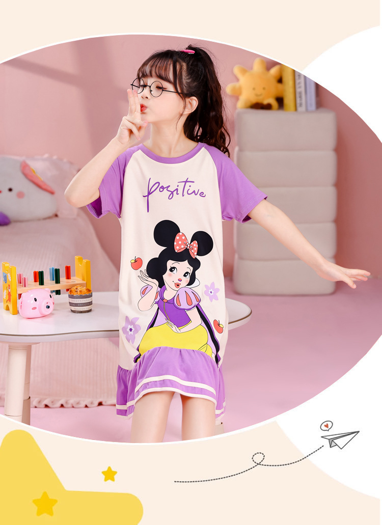여름 어린이 잠옷 소녀 얇은 반팔 치마 귀여운 만화 작은 소녀 중 큰 아기 홈 에어컨 옷스토어 가기