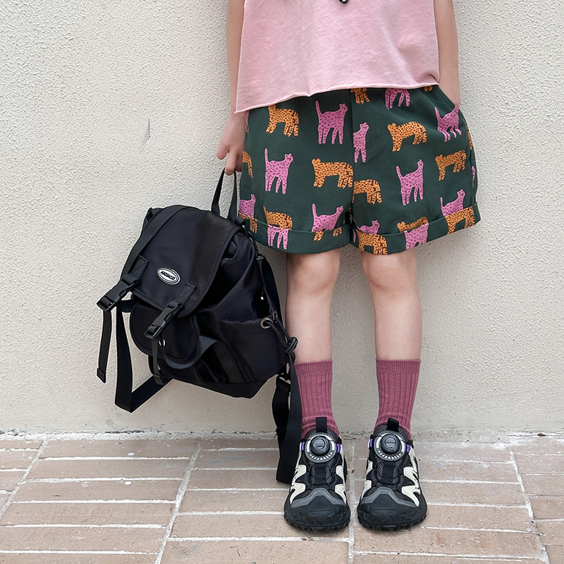 Aimo Beibei 2025 새로운 여름 어린이 바지 어린이 유행 캐주얼 느슨한 다목적 전체 인쇄 컬링 캐주얼 반바지