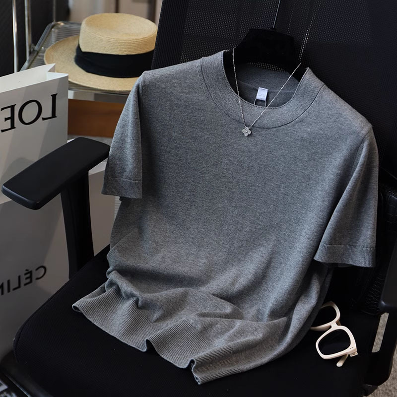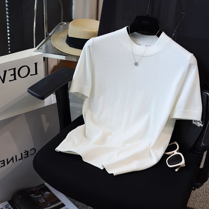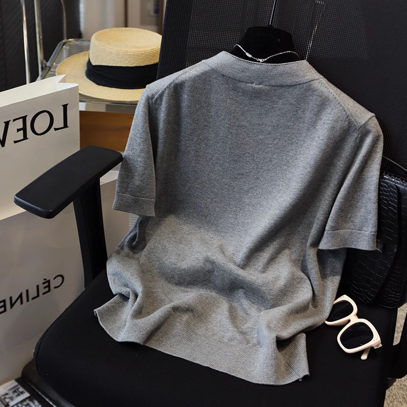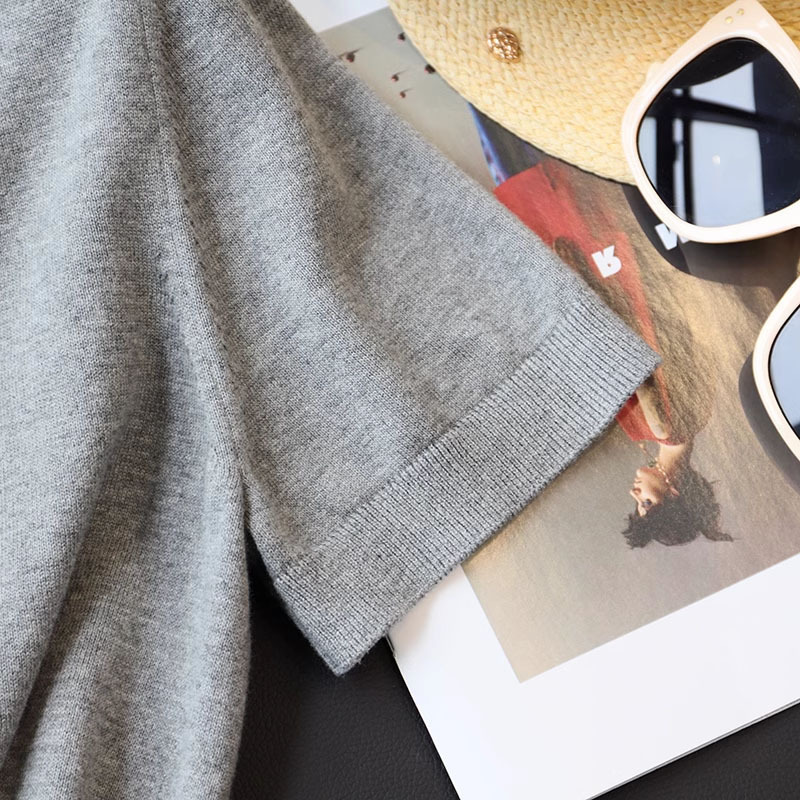 미니 스타일 우아한 패션 니트 반팔 티셔츠 여성의 2024 여름 탑 라운드 넥 느슨한 슬리밍 디자인