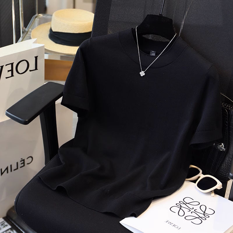 미니 스타일 우아한 패션 니트 반팔 티셔츠 여성의 2024 여름 탑 라운드 넥 느슨한 슬리밍 디자인스토어 가기
