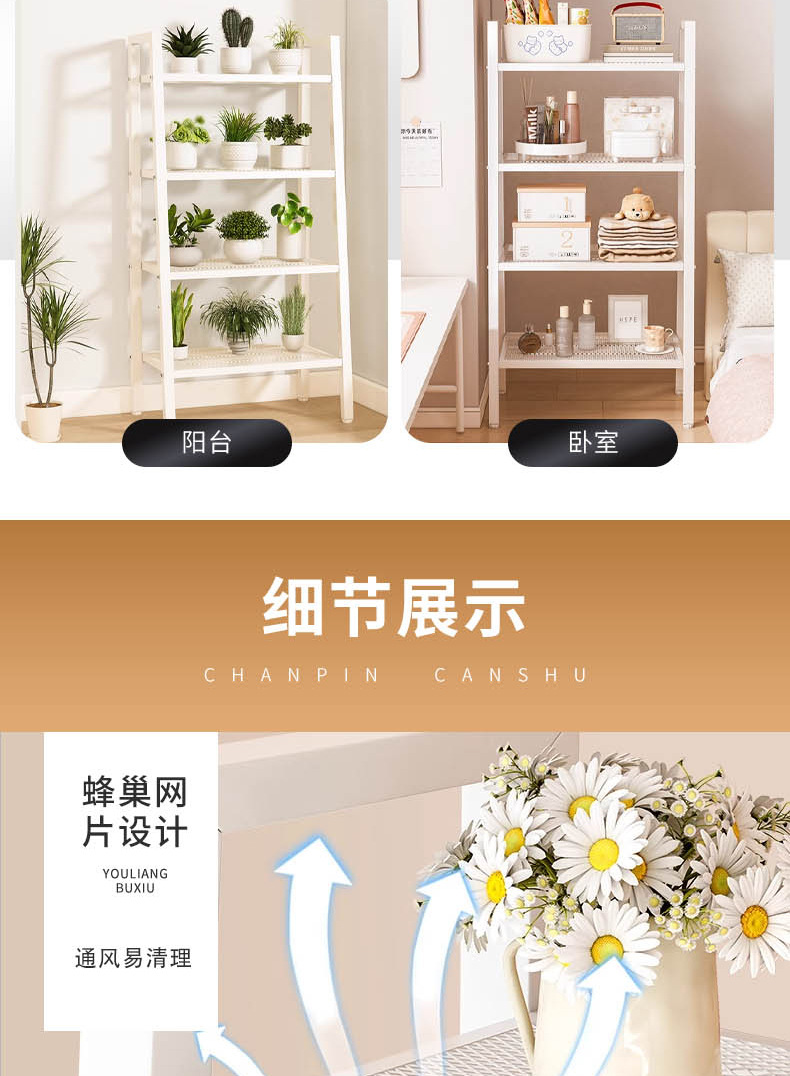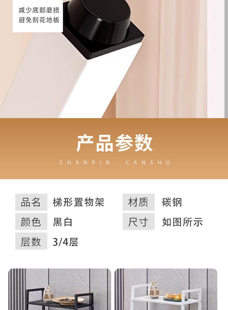 北欧简约多层家用置物架客厅厨房多功能梯形收纳架阳台花架储物架
