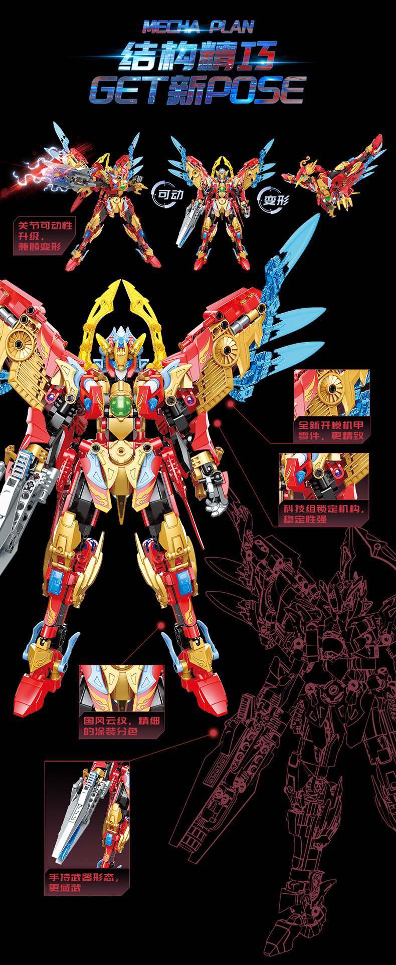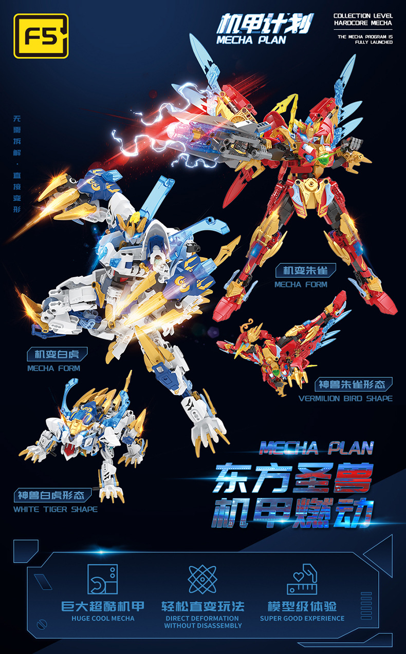 Jiaqi 빌딩 블록 [F5] 시리즈 변형 메카 4 신성한 야수 국가 바람 조립 장난감 소년 선물 로봇스토어 가기