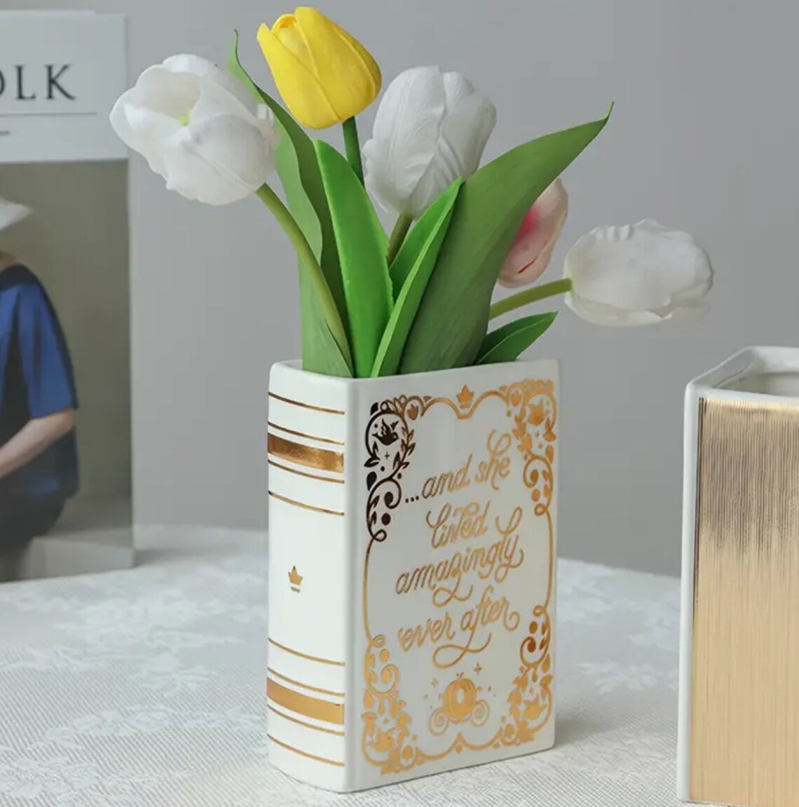 창조적 인 성격 책 세라믹 꽃병 꽃 삽입 장식품 데스크탑 장식 용품 거실 식탁 꽃병스토어 가기