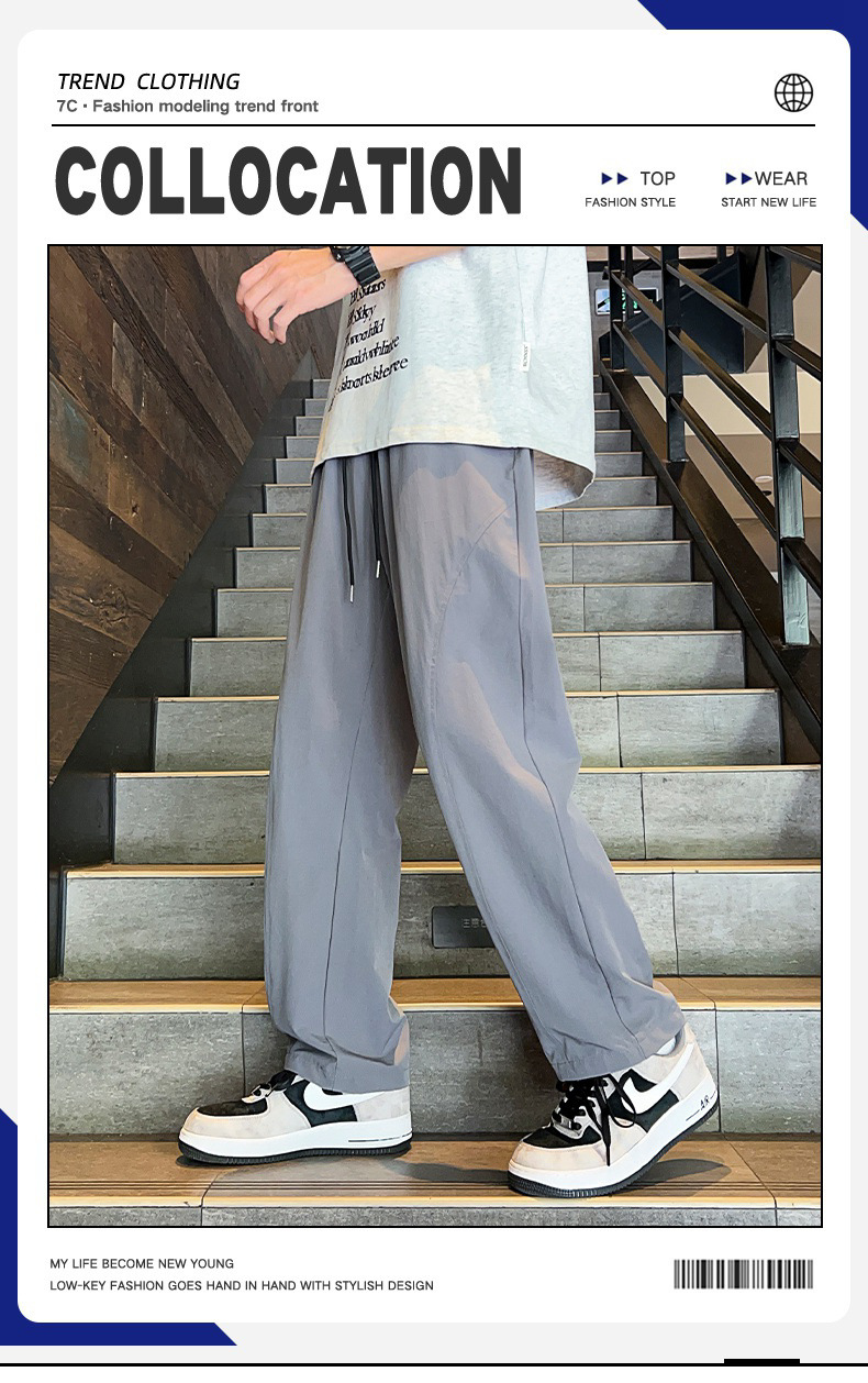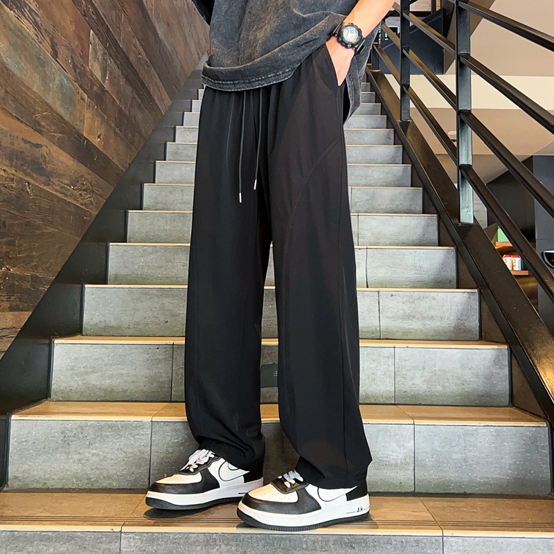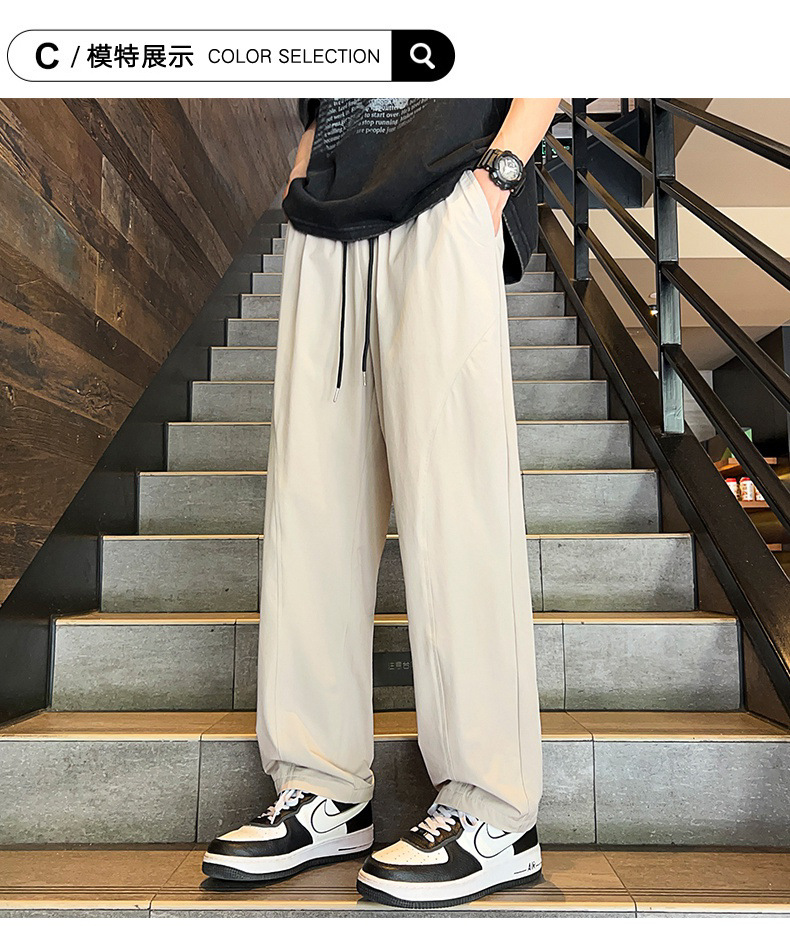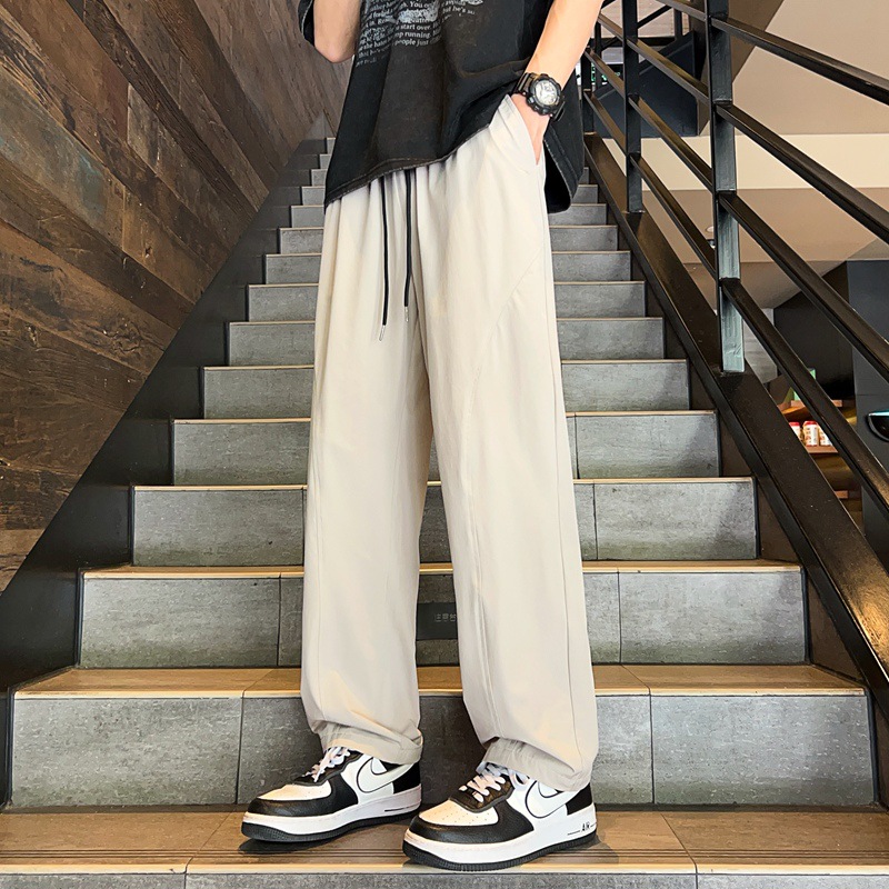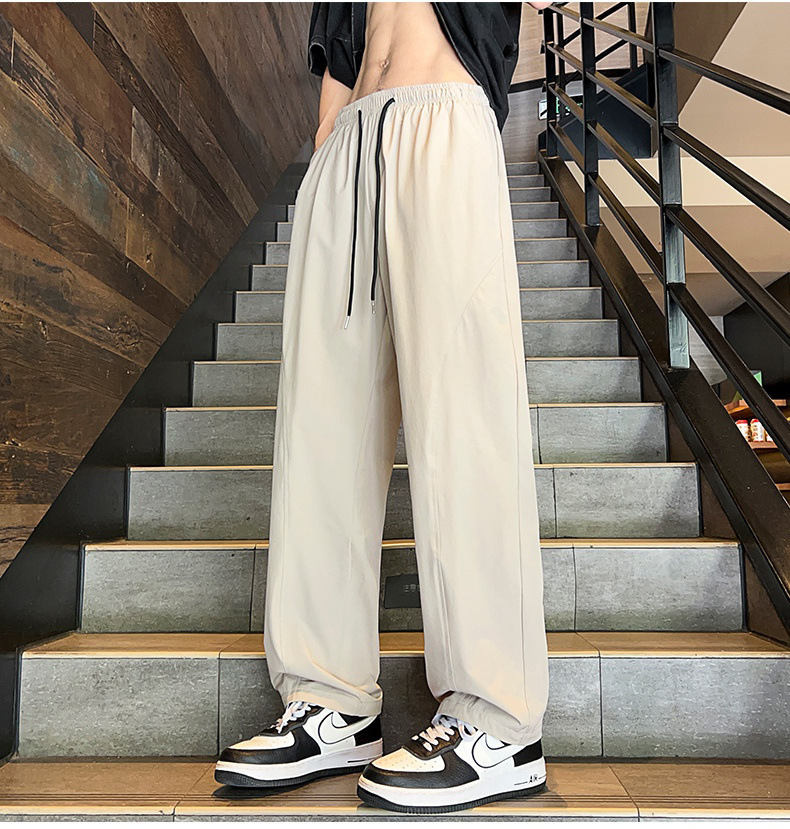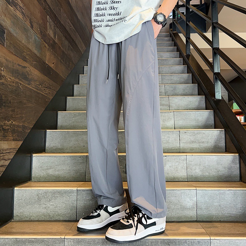 아이스 실크 남자 바지 여름 얇은 유행 브랜드 남자 스트레이트 남자 캐주얼 바지 느슨한 간단한 올매치 남자 바지스토어 가기