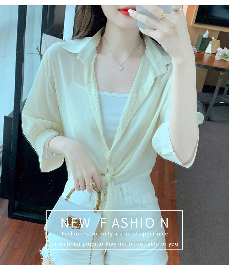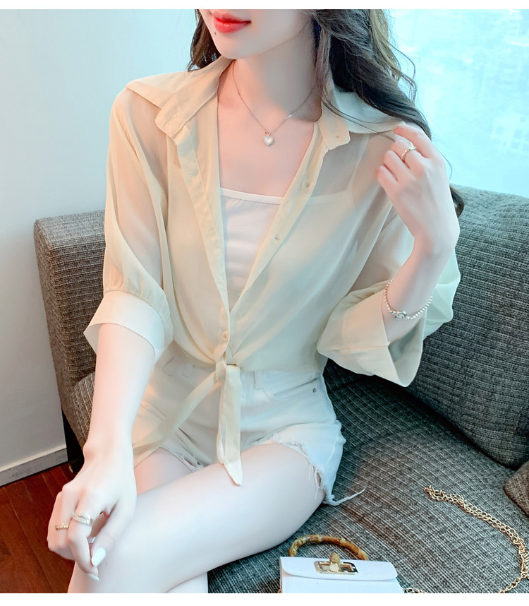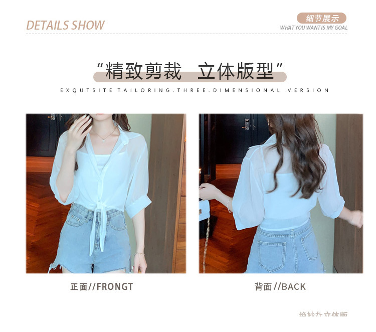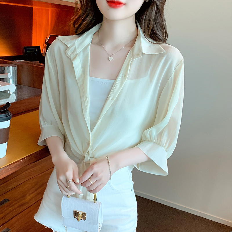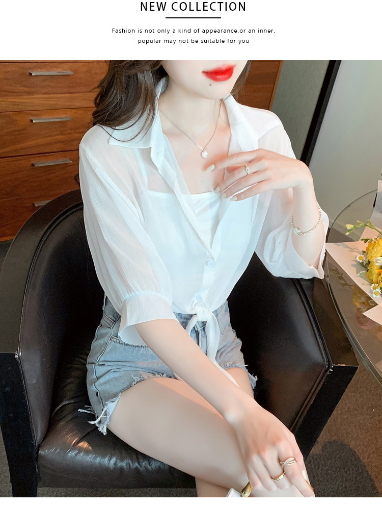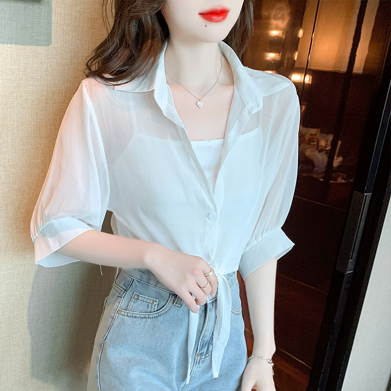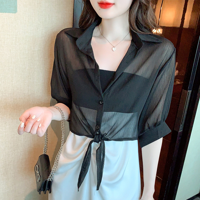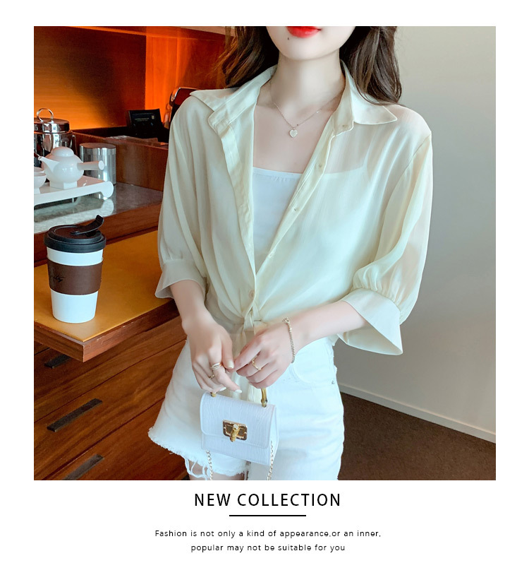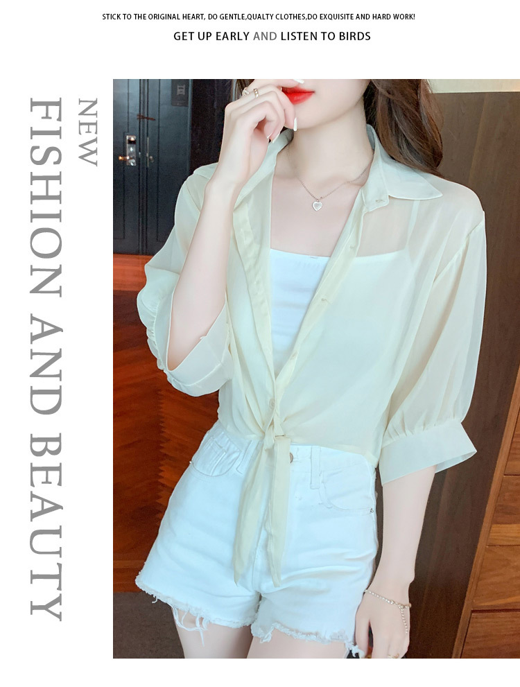 대외 무역 쉬폰 작은 허리 코트 셔츠 여름 올 매치 느슨한 작은 외부 착용 태양 보호 의류 여성 카디건 외부 착용 얇은 작은 셔츠 트렌디스토어 가기