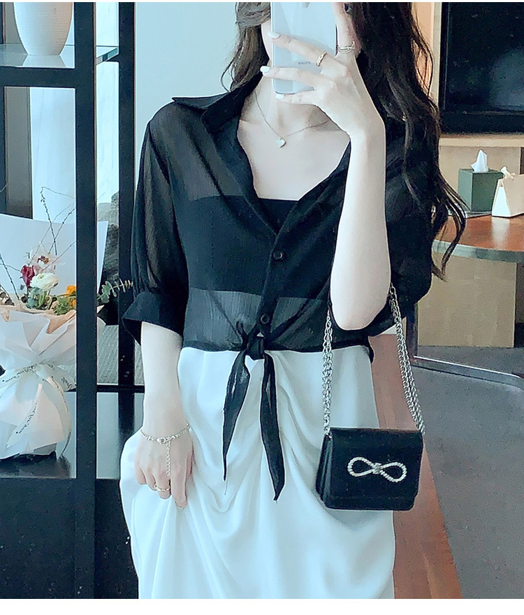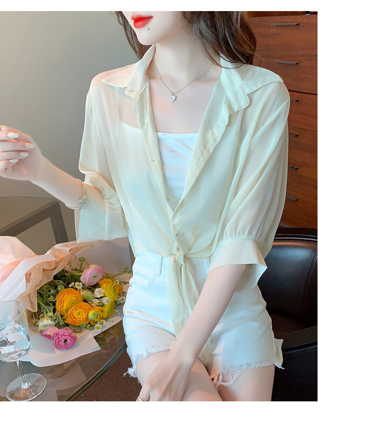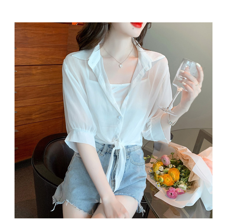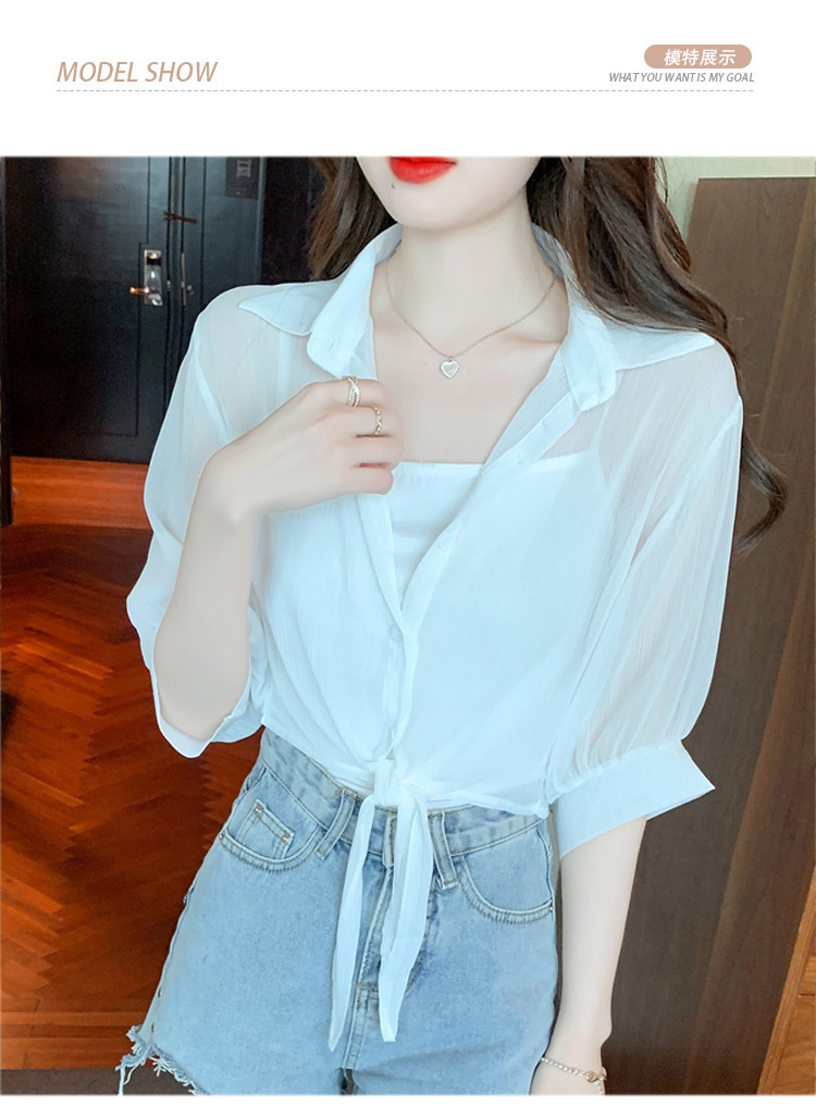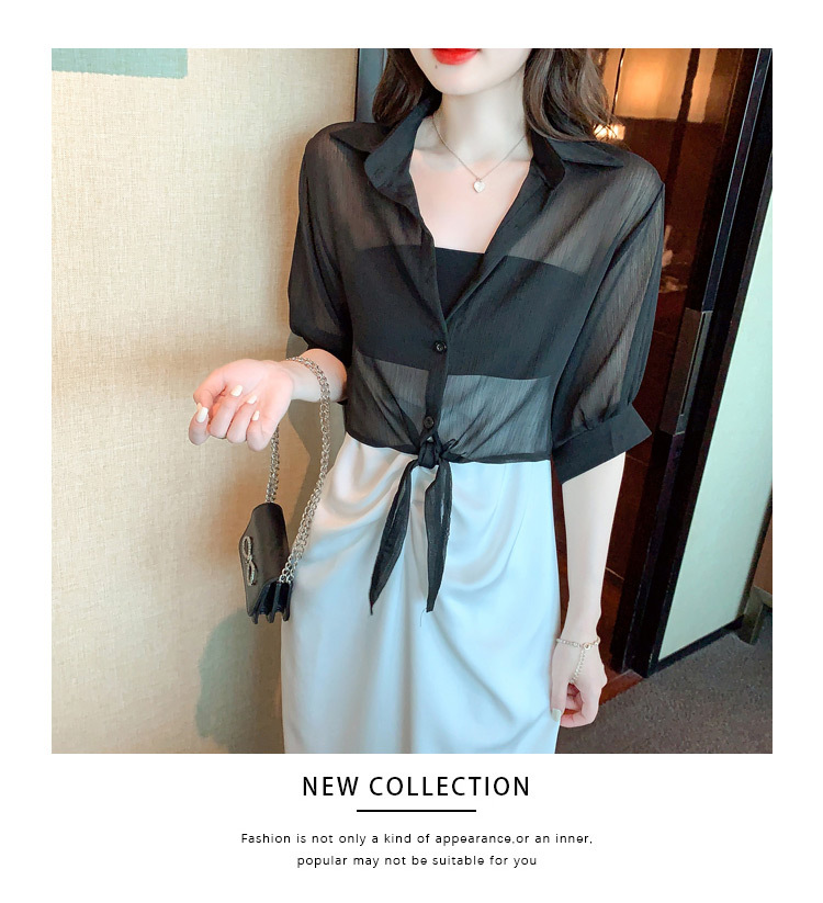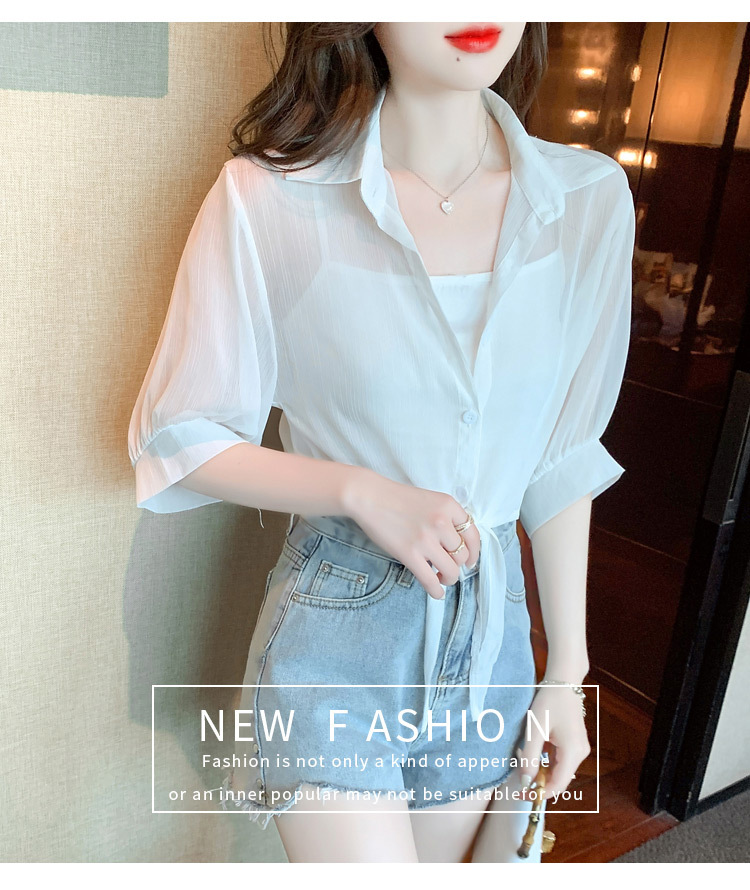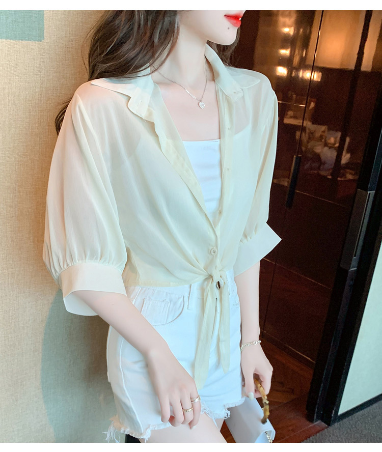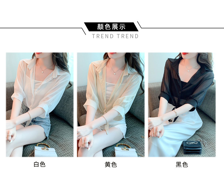 대외 무역 쉬폰 작은 허리 코트 셔츠 여름 올 매치 느슨한 작은 외부 착용 태양 보호 의류 여성 카디건 외부 착용 얇은 작은 셔츠 트렌디스토어 가기