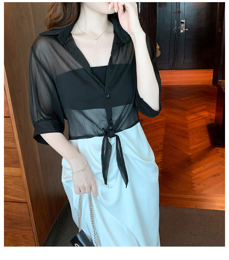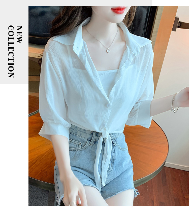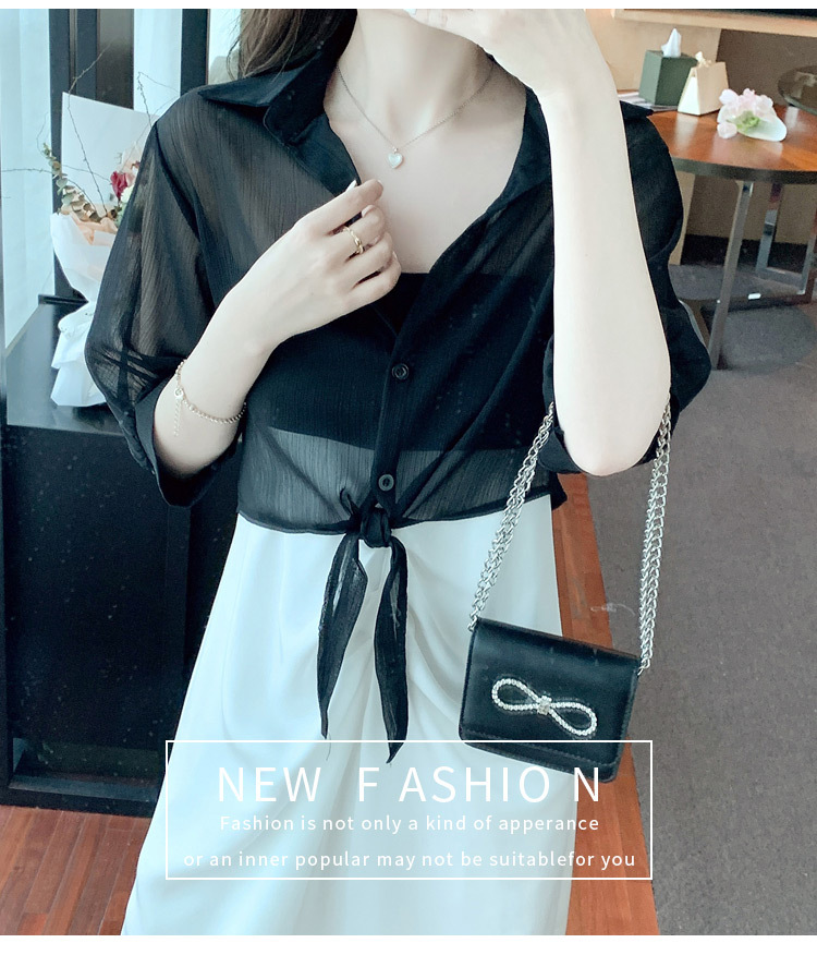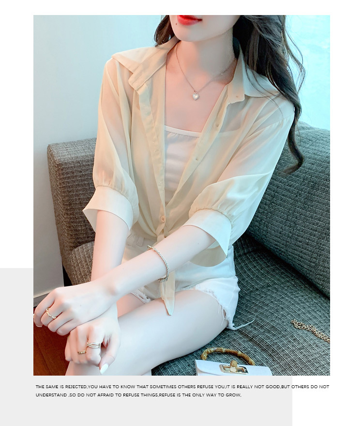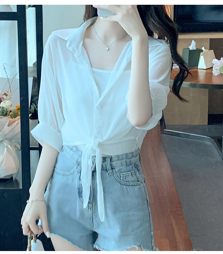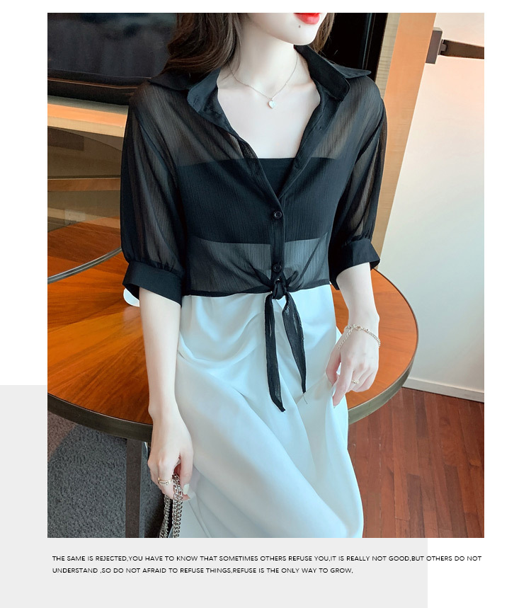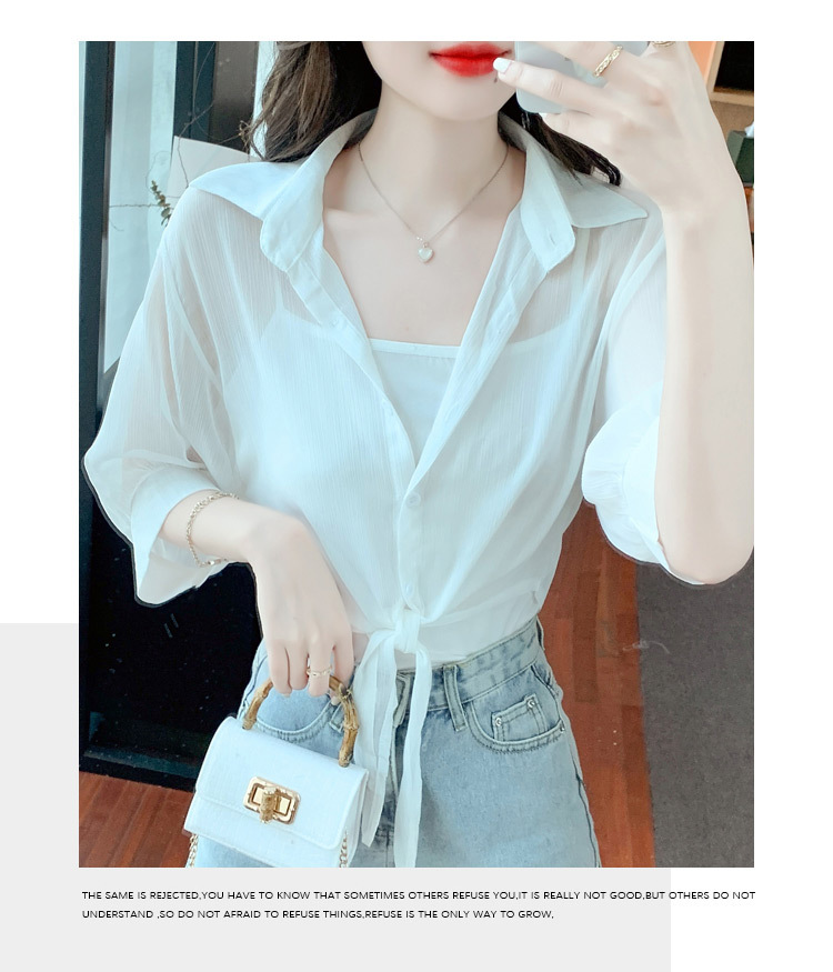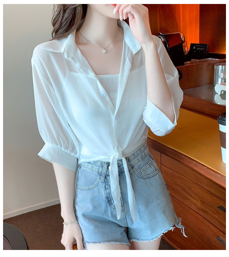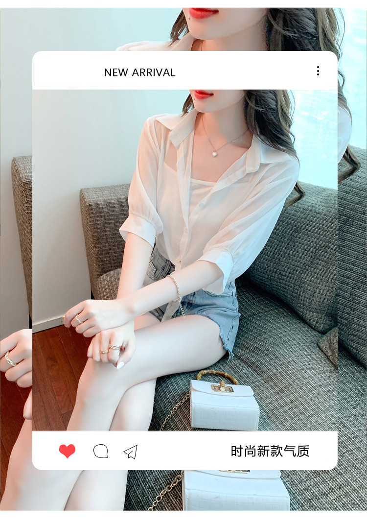대외 무역 쉬폰 작은 허리 코트 셔츠 여름 올 매치 느슨한 작은 외부 착용 태양 보호 의류 여성 카디건 외부 착용 얇은 작은 셔츠 트렌디스토어 가기