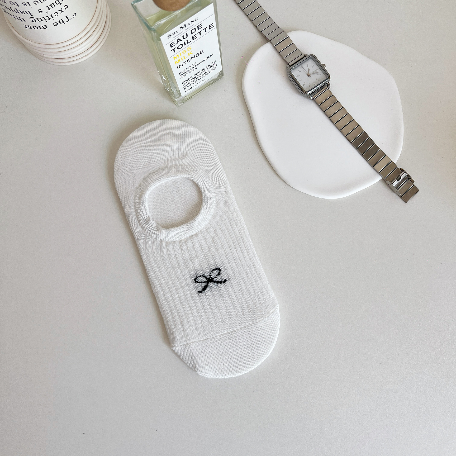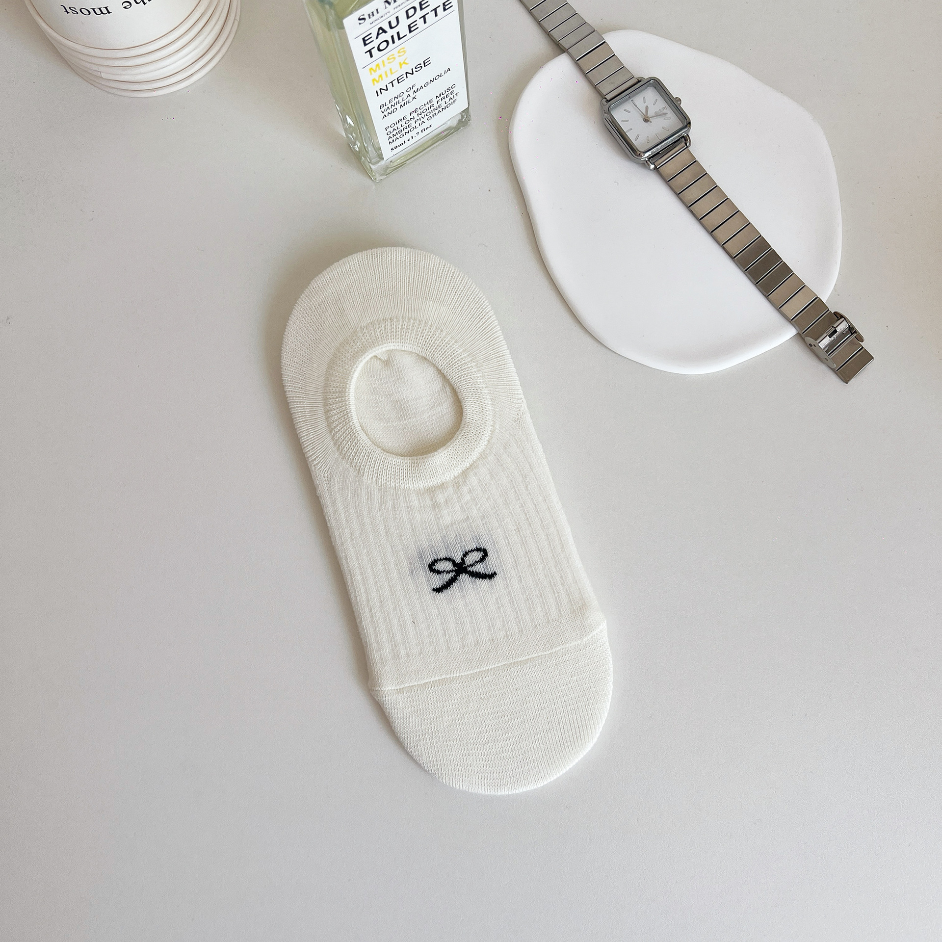 • Bowknot 보트 양말 "우유 흰색]