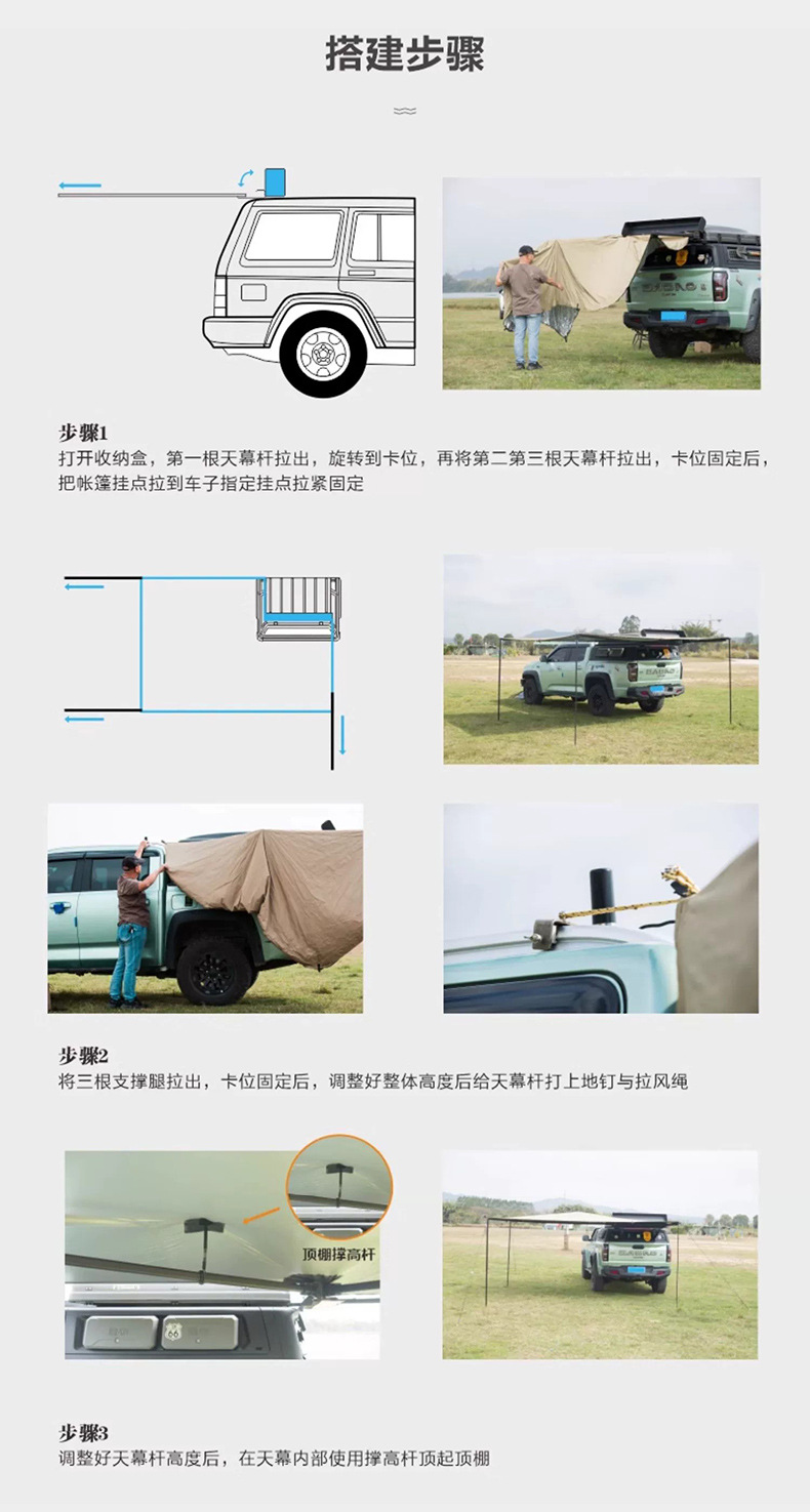 Mu Jiao Di 새로운 폭발 야외 알루미늄 쉘 합금 실버 코팅 자동차 후방 텐트 RV 양산 자동차 캐노피 텐트