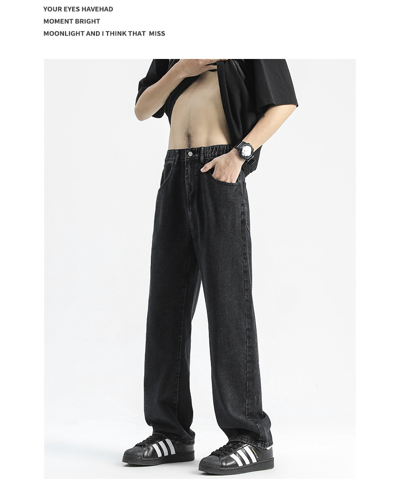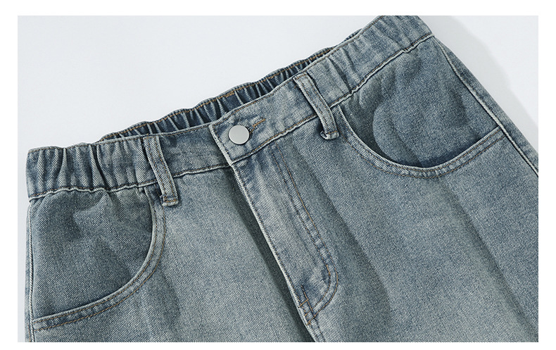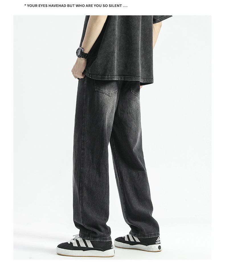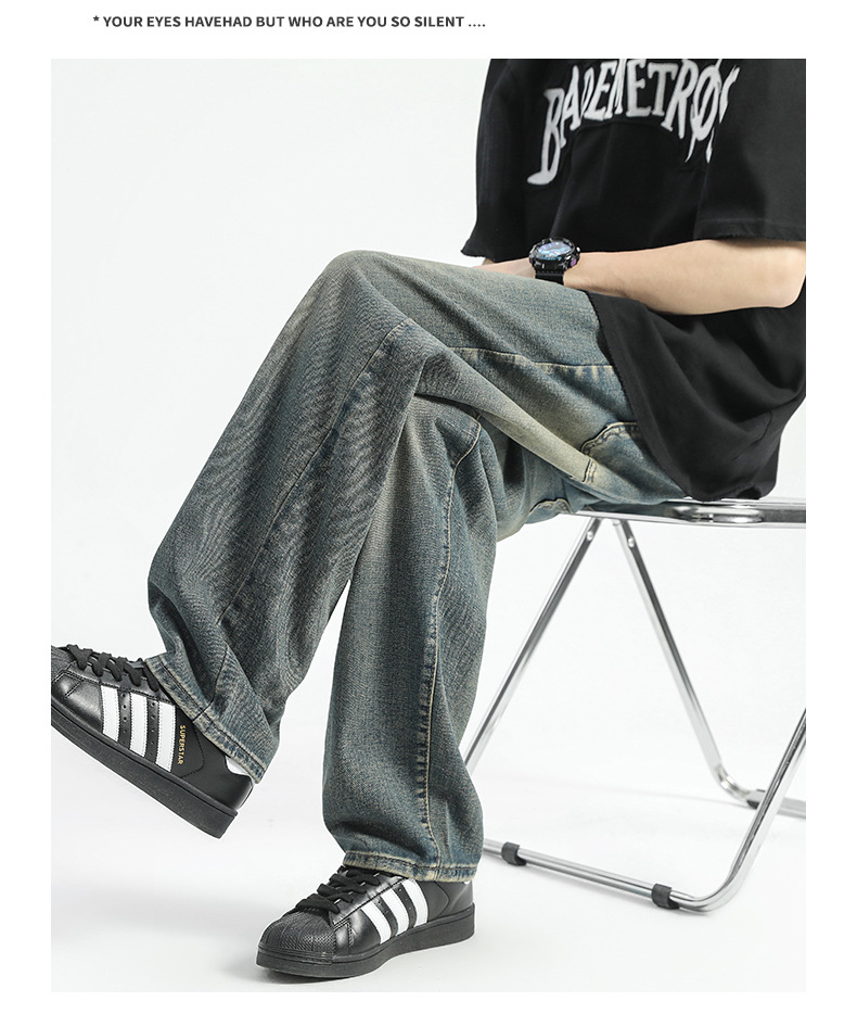 Muqiu 남성 │ Xintang 청바지 남성 아메리칸 하이 스트리트 레트로 화이트 워시 루즈 스트레이트 와이드 레그 롱 팬츠스토어 가기