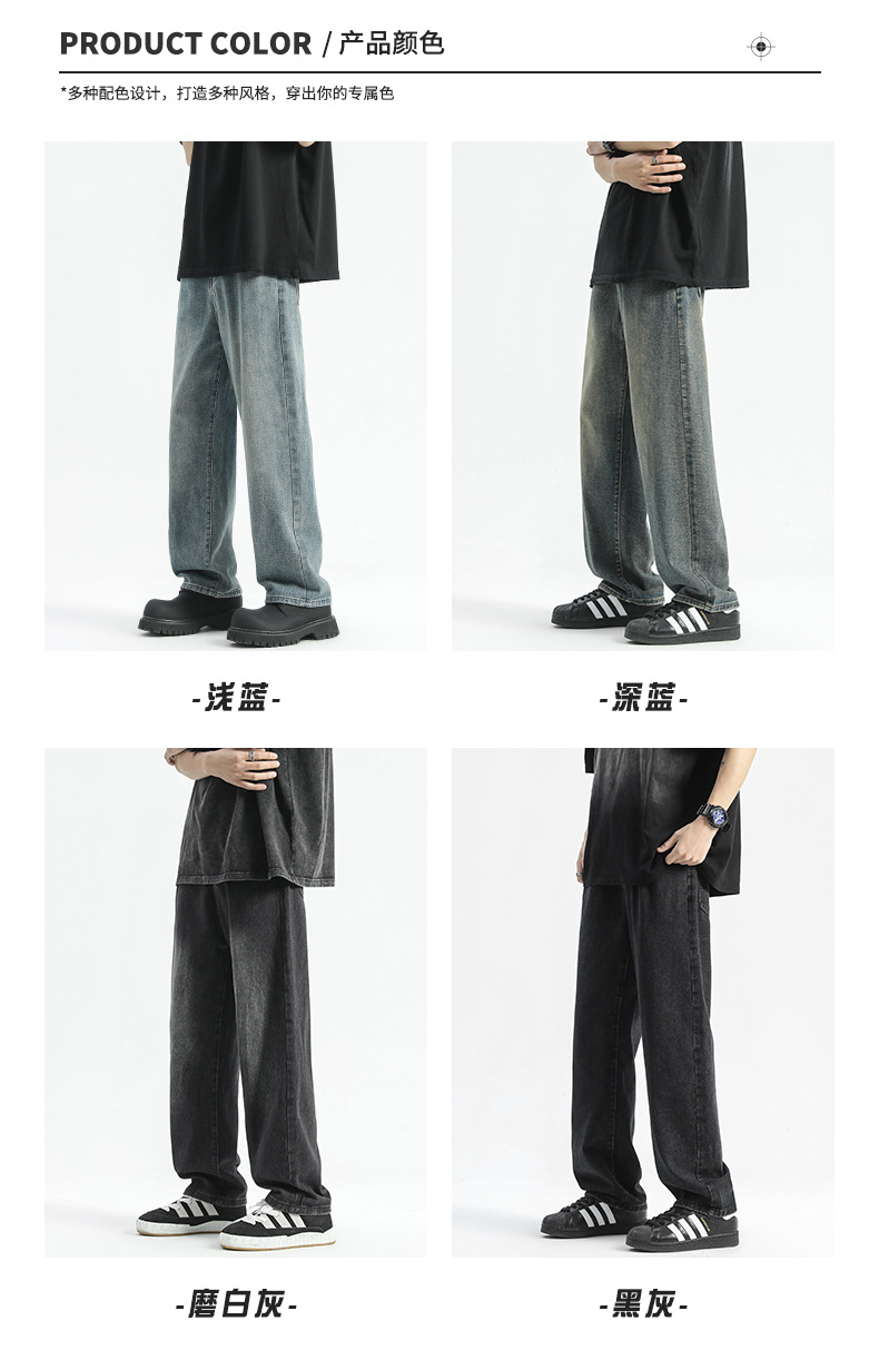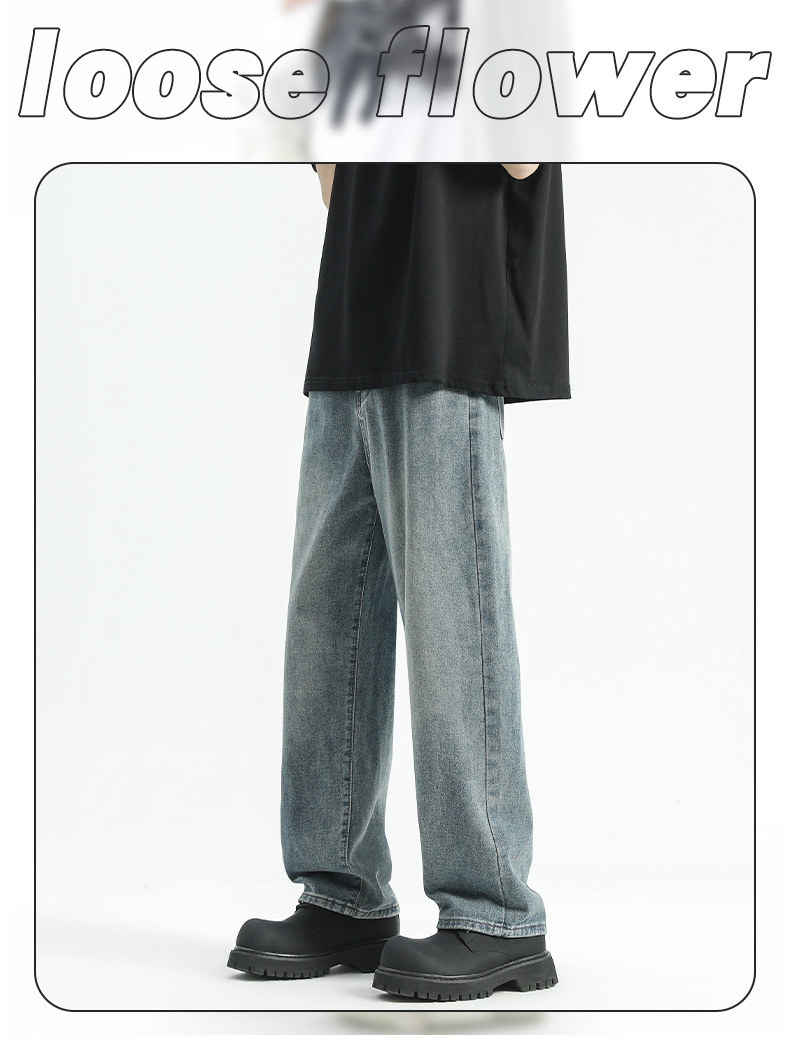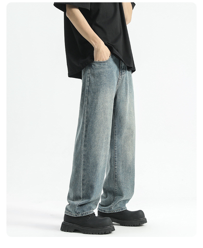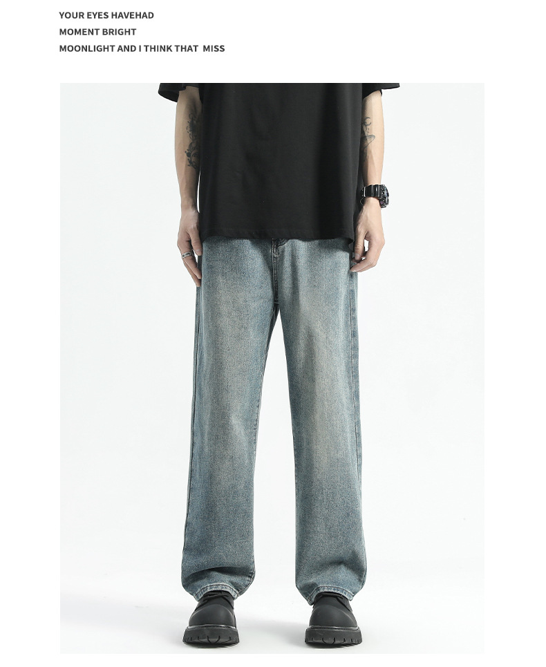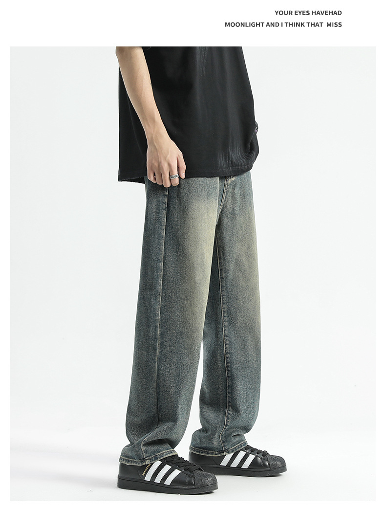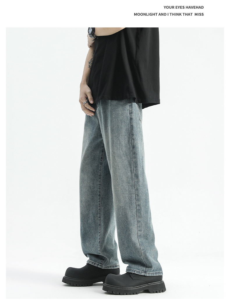 Muqiu 남성 │ Xintang 청바지 남성 아메리칸 하이 스트리트 레트로 화이트 워시 루즈 스트레이트 와이드 레그 롱 팬츠