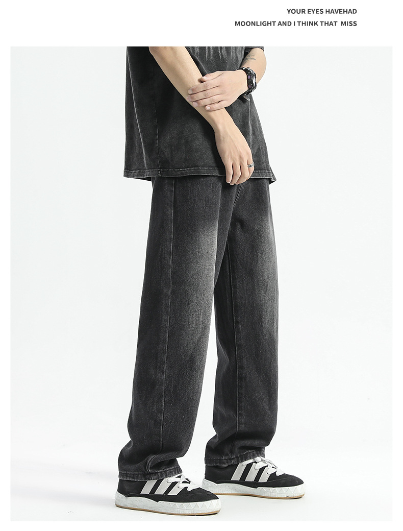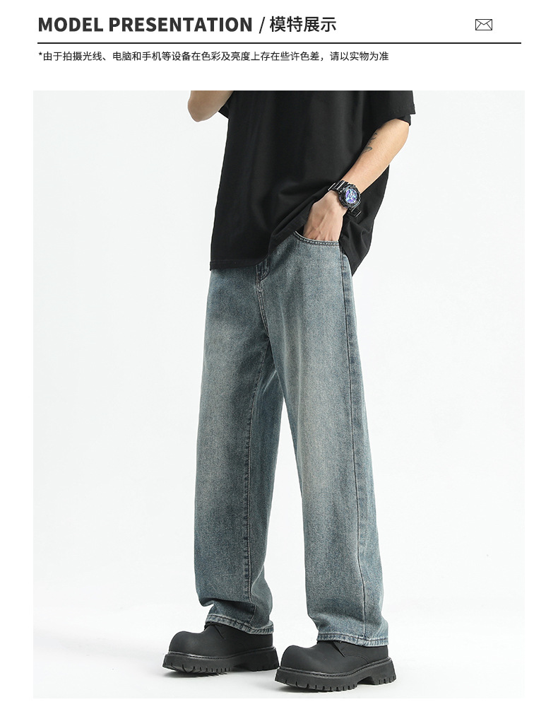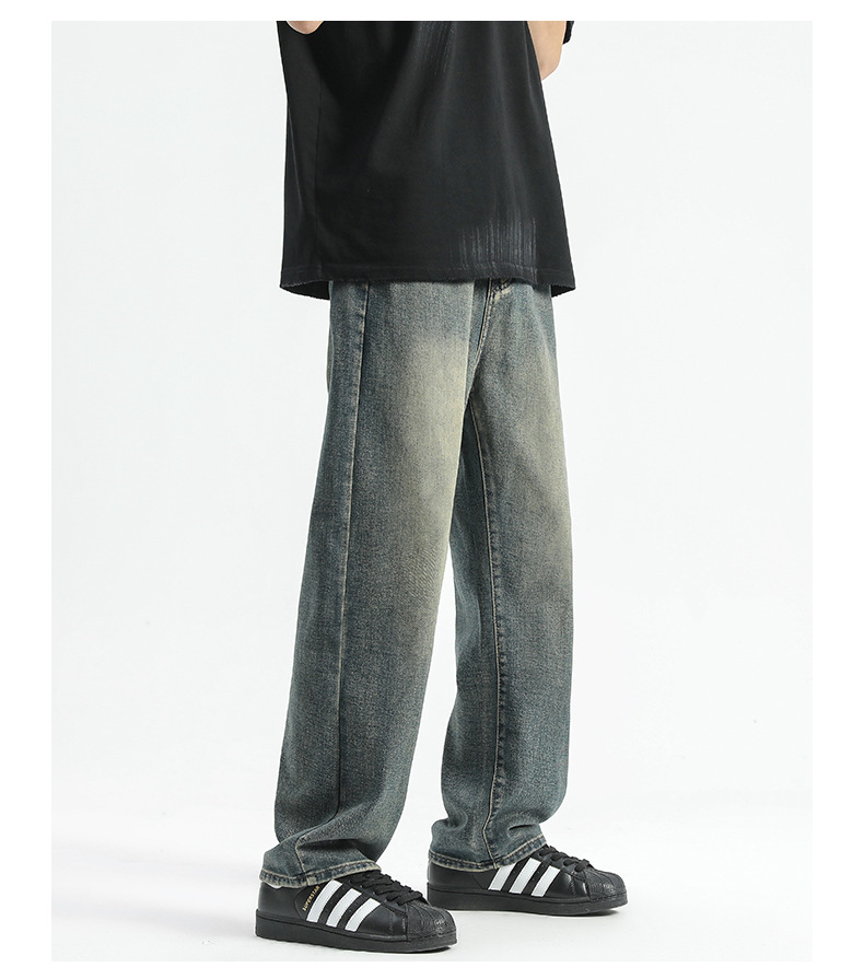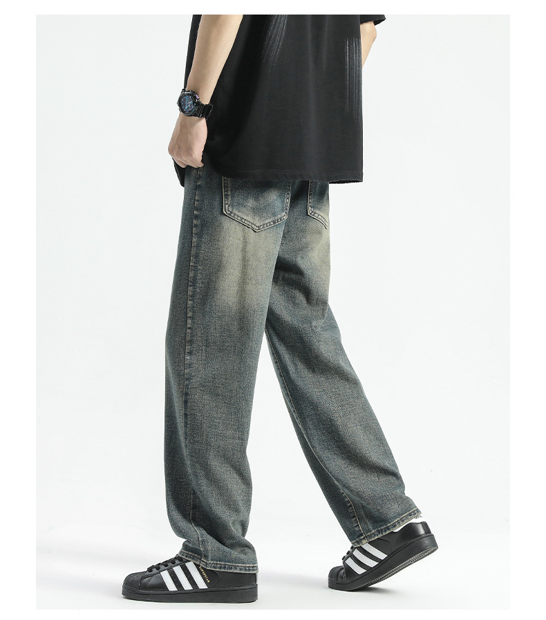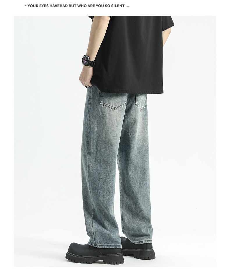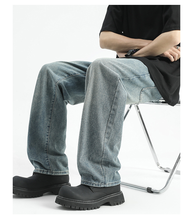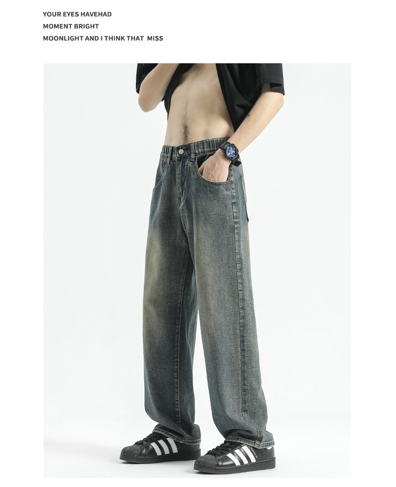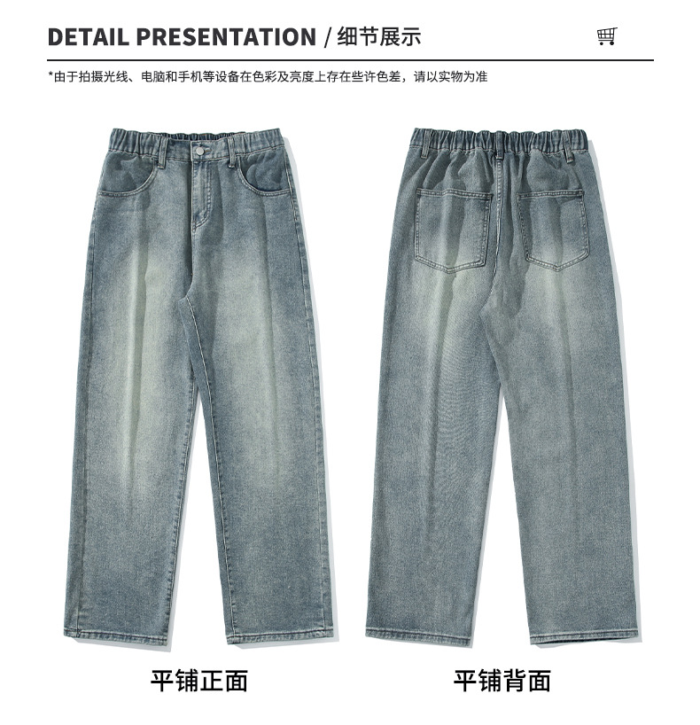 Muqiu 남성 │ Xintang 청바지 남성 아메리칸 하이 스트리트 레트로 화이트 워시 루즈 스트레이트 와이드 레그 롱 팬츠