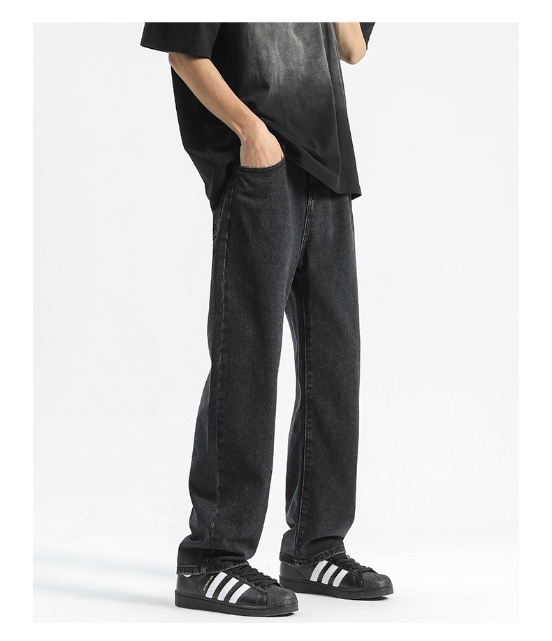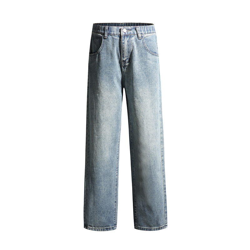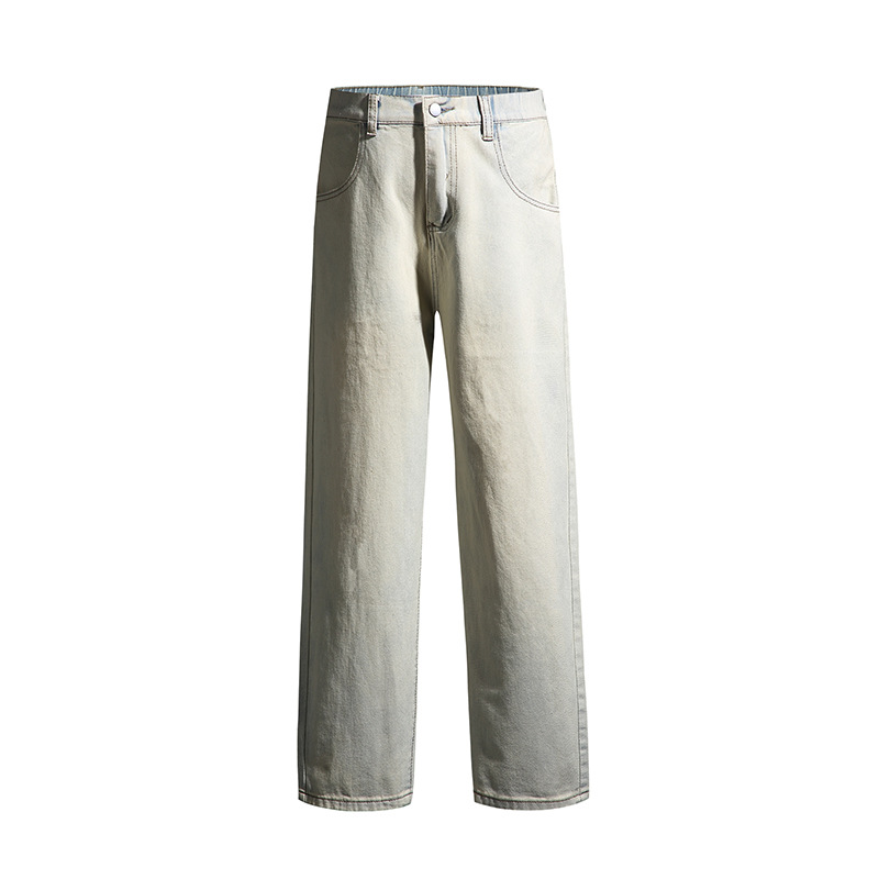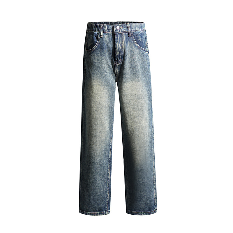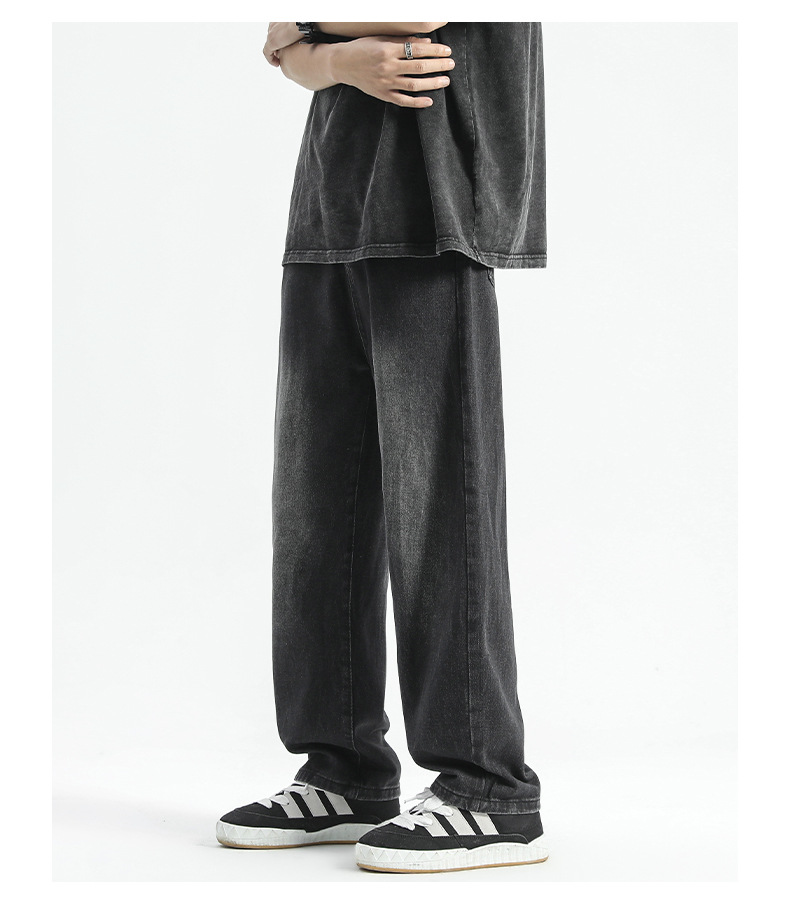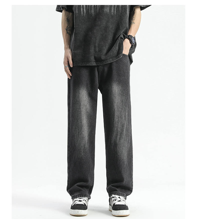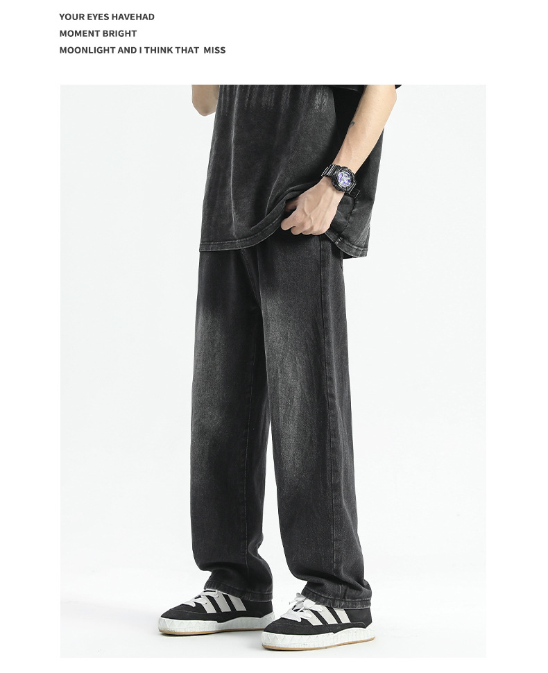 Muqiu 남성 │ Xintang 청바지 남성 아메리칸 하이 스트리트 레트로 화이트 워시 루즈 스트레이트 와이드 레그 롱 팬츠