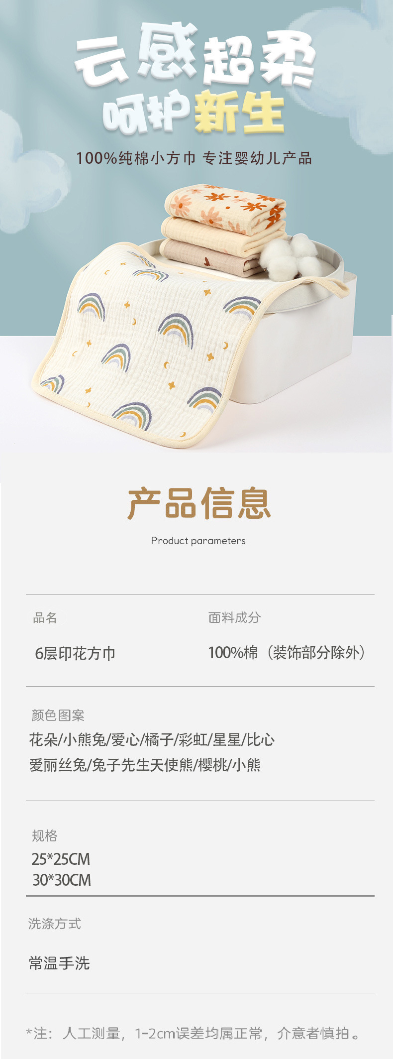 아기 거즈 타월 순면 슈퍼 부드러운 신생아 손수건 세척 수건 어린이 작은 사각형 수건 아기 유아 타액 6 층