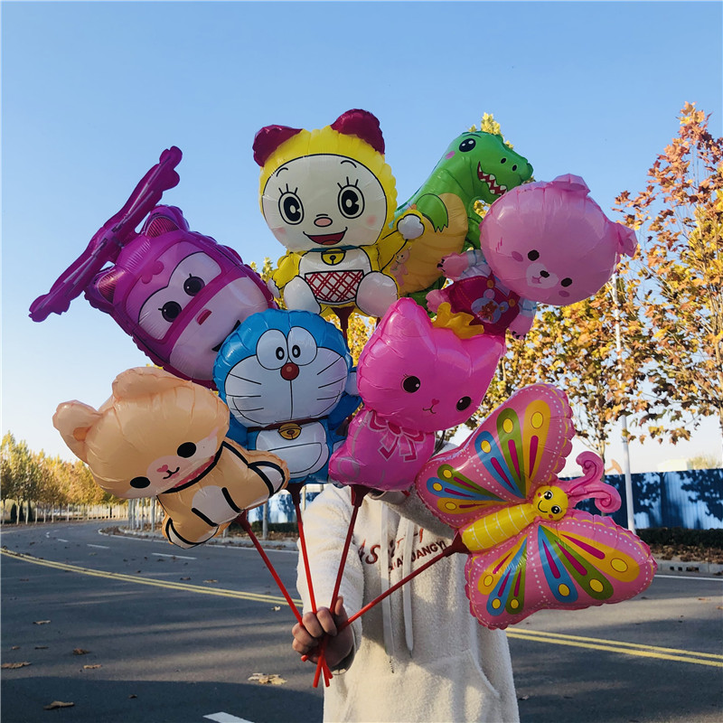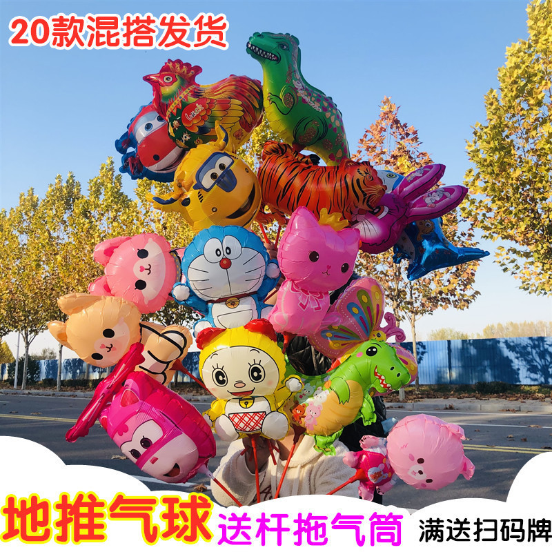 중간 만화 알루미늄 필름 동물 드래그 막대 풍선 푸시 풍선 어린이 장난감 스윕 코드 풍선 파티 귀여운스토어 가기