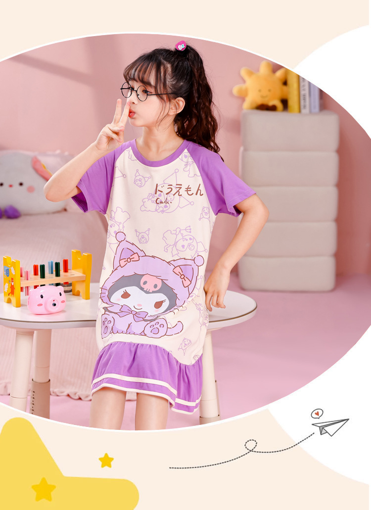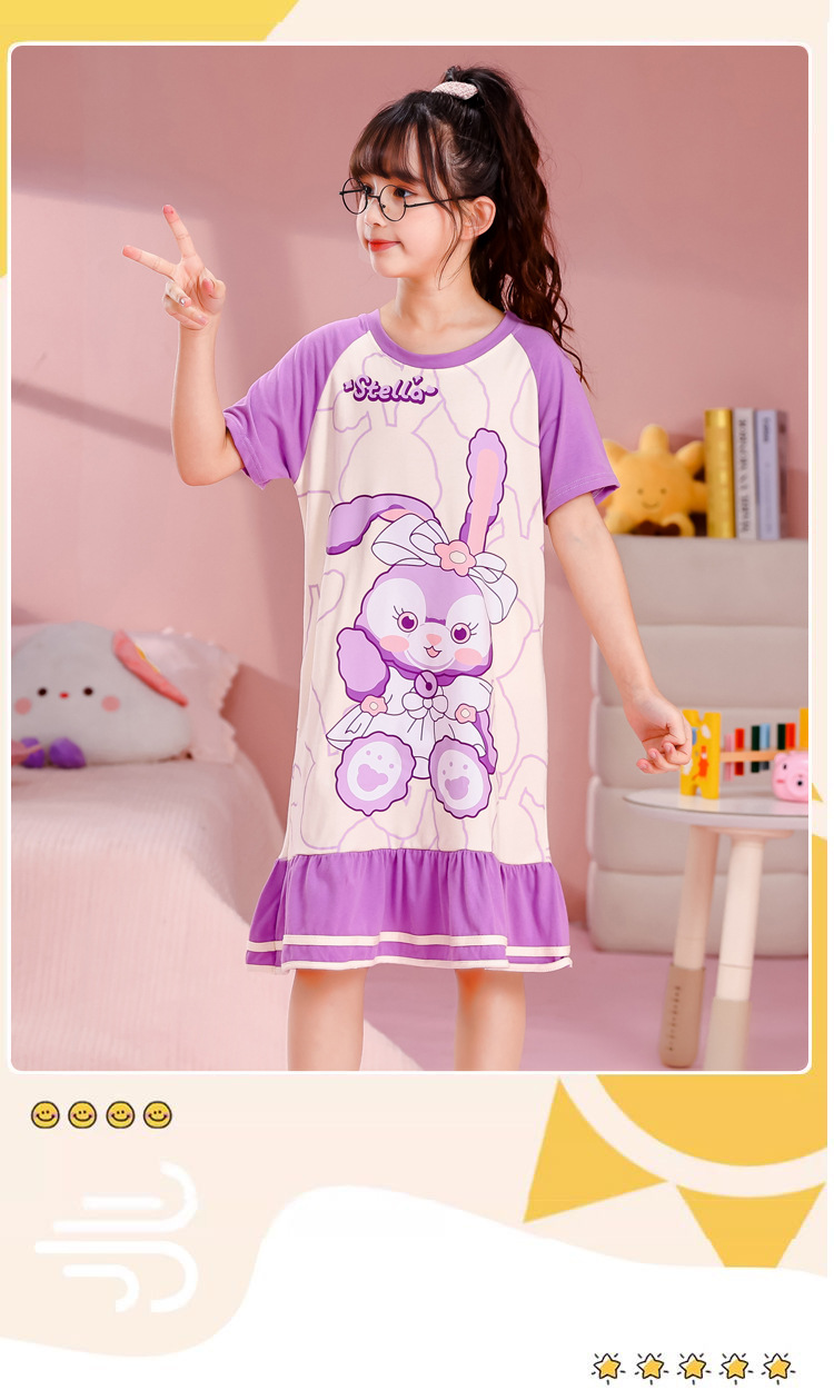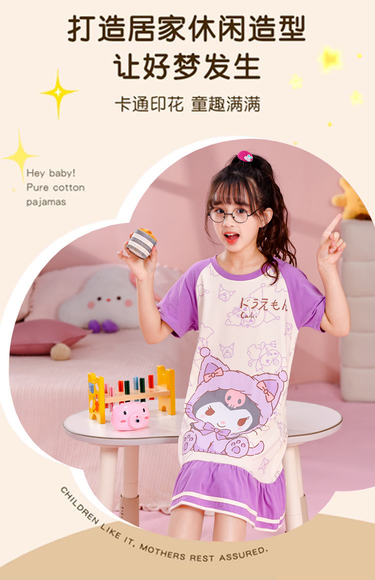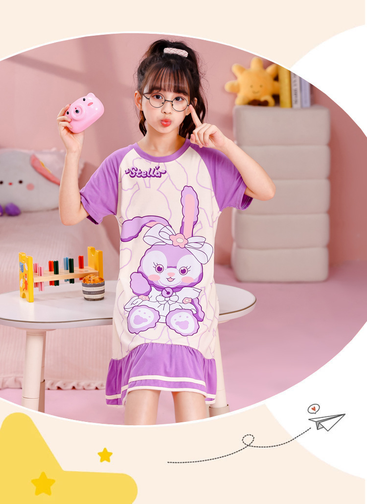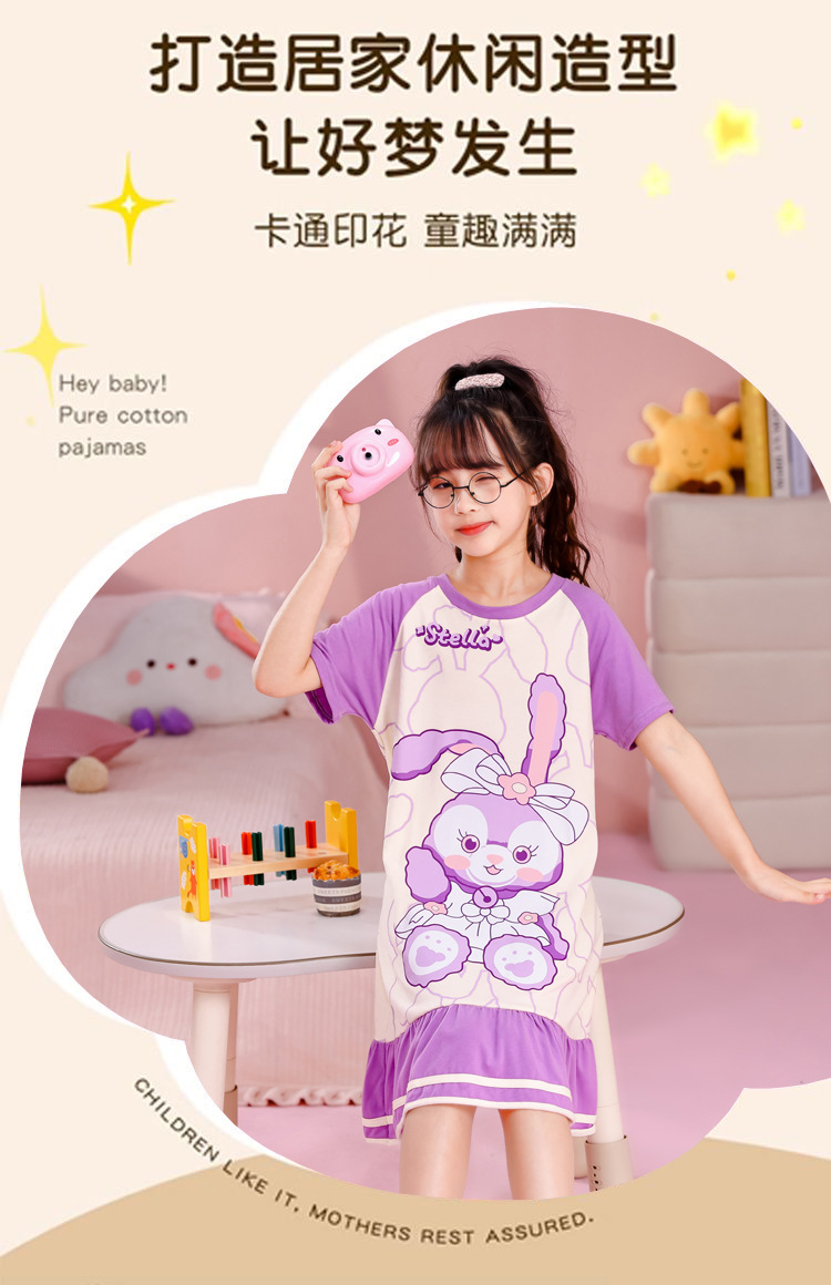 여름 어린이 잠옷 여학생 잠옷 반소매 얇은 반팔 반팔 반팔 반팔 얇은 작은 소녀 중학생 여름 외신 가정 옷스토어 가기