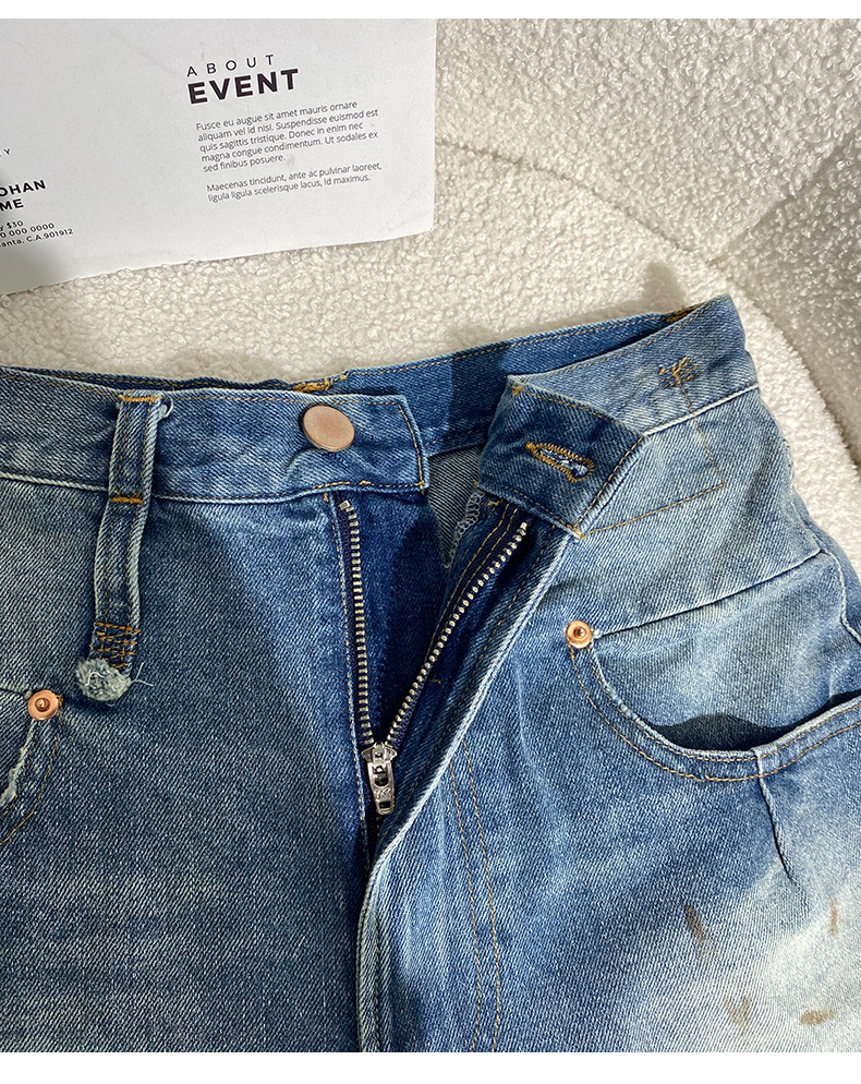 틈새 2024 봄과 여름 여성을위한 새로운 푸른 타이트 허리 느슨한 올 매치 캐주얼 청바지
