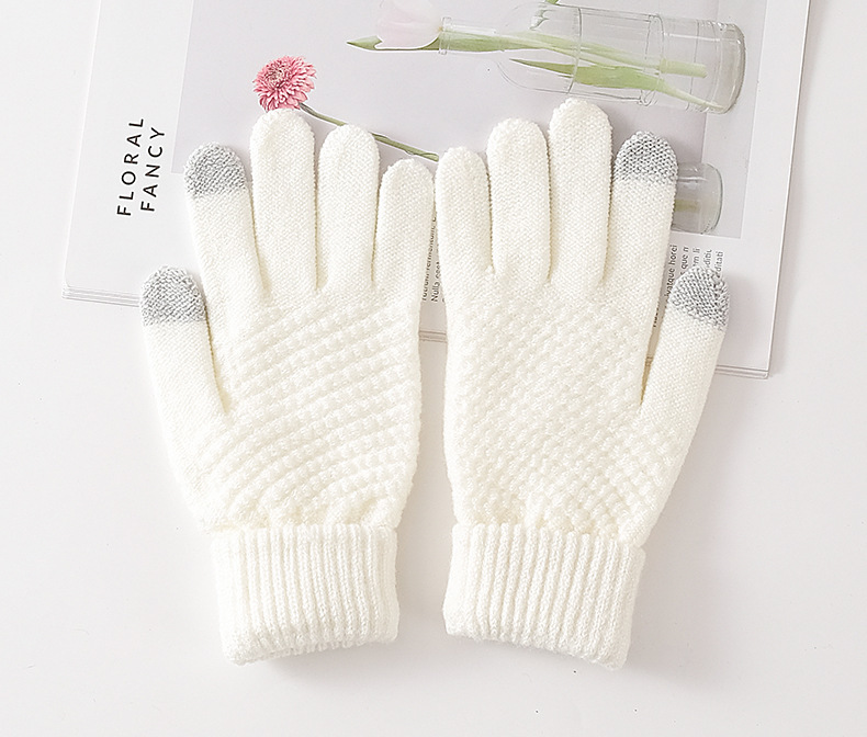파인애플 장갑 기모 두꺼운 한국 버전의 냉장 귀여운 승마 터치 스크린 따뜻한 울 니트 장갑 도매