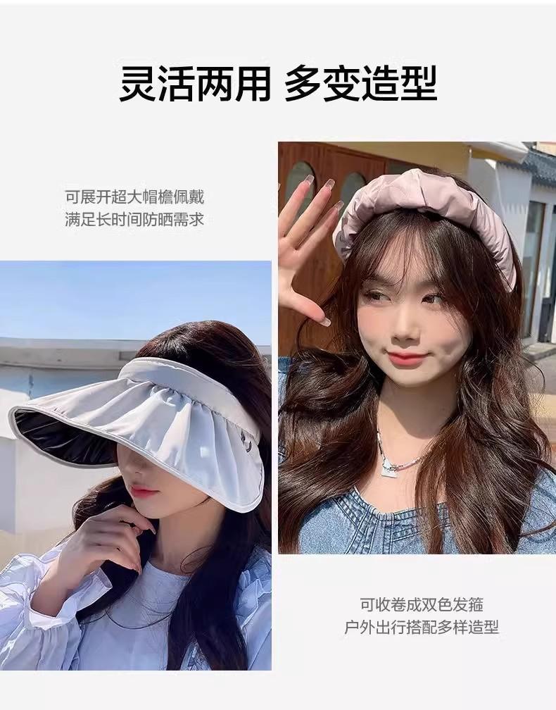 태양 모자는 여름에 아이들을위한 머리띠 컬링 선 스크린 차양 모자 UV 레이스 큰 테두리 빈 탑 모자로 사용할 수 있습니다.스토어 가기
