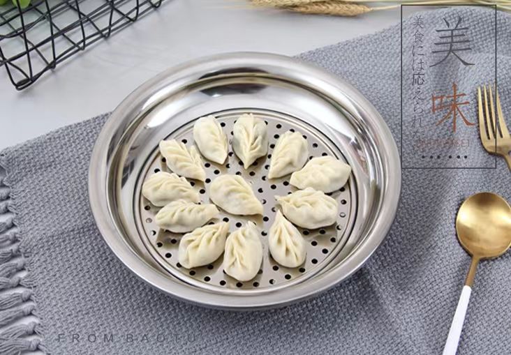 두꺼운 스테인레스 스틸 만두 플레이트 가정용 2 칸 디너 플레이트 디스크 배수 플레이트 디쉬 포인트 플레이트 더블 레이어 플레이트 과일 플레이트스토어 가기