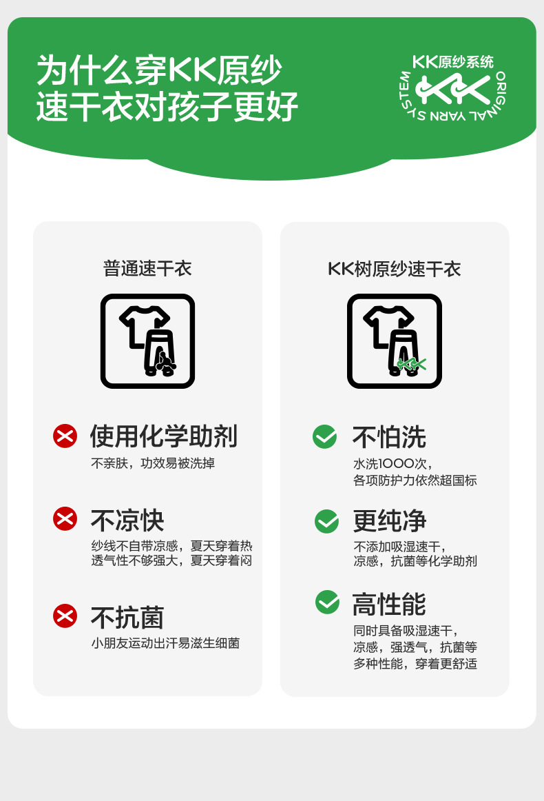KK 트리 오리지널 원사 어린이 빠른 건조 의류 세트 소년 소녀 반팔 티셔츠 야외 여름 땀 흡수 스포츠 세트스토어 가기