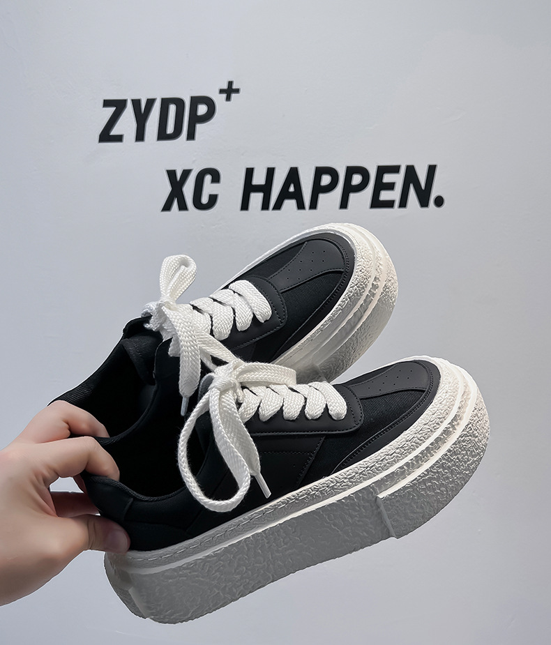 새로운 두꺼운 밑창 증가 통기성 올 매치 캐주얼 스니커즈 2024 Spring Niche Ins 스타일 레이스 업 스포츠 스케이트 보드 신발스토어 가기