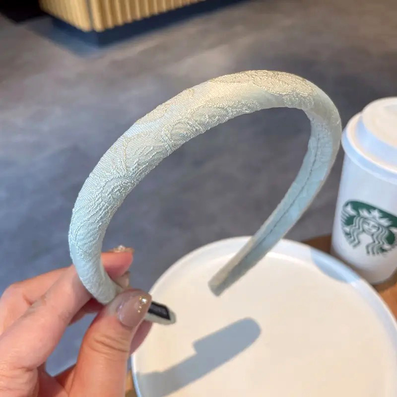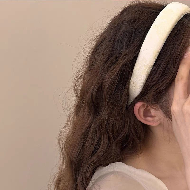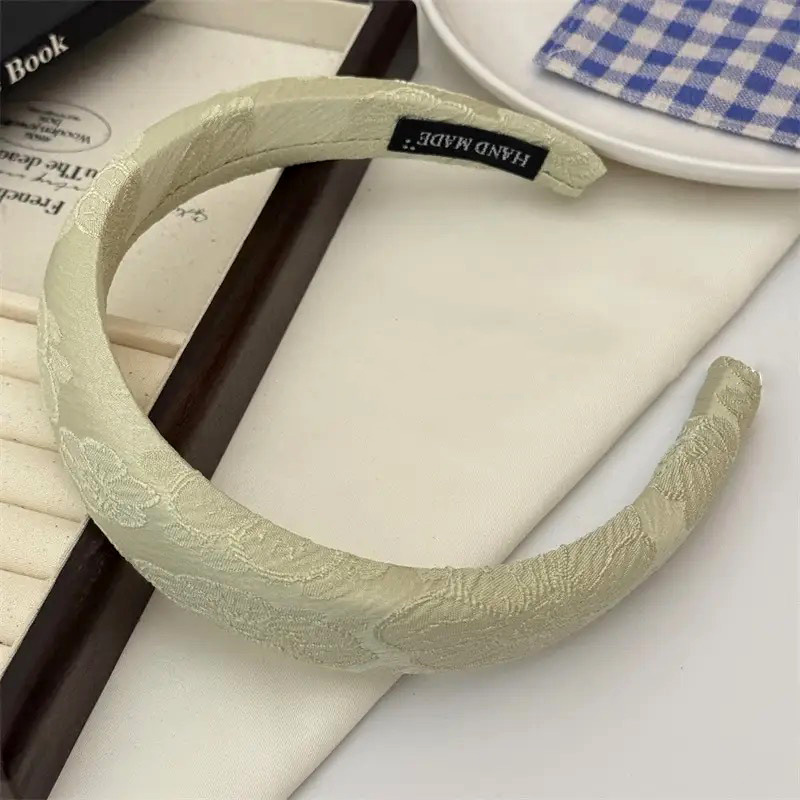 새로운 중국 스타일의 넓은 머리띠 높은 두개골 최고 고급 아나글리프 인쇄 머리띠 여성 모방 새틴 좁은 다목적 헤어 액세서리