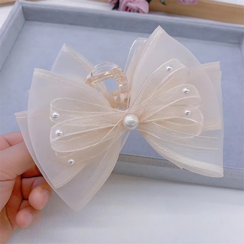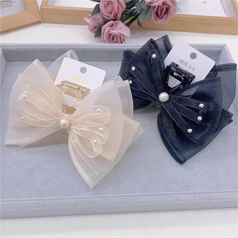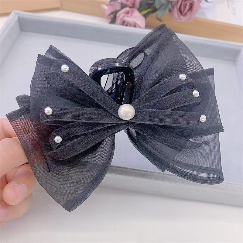 고급 라인 스톤 상감 디스크 헤어 핀 여성의 머리 뒤 잡아 클립 한국 우아한 활 메쉬 대형 상어 클립스토어 가기