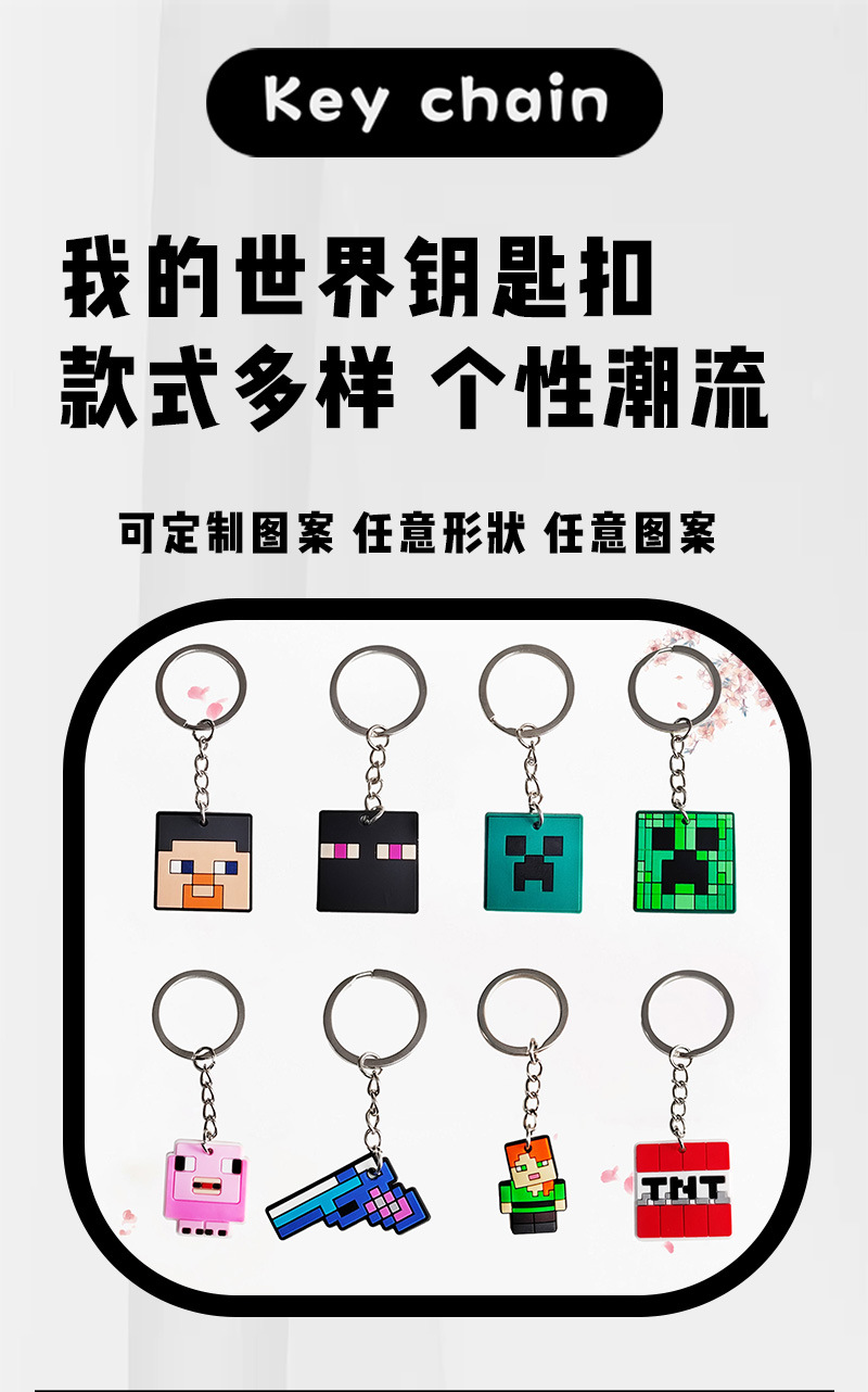 내 세계 키 체인 pvc 소프트 접착제 키 체인 펜던트 버클 수하물 키 체인 선물 키 체인 펜던트