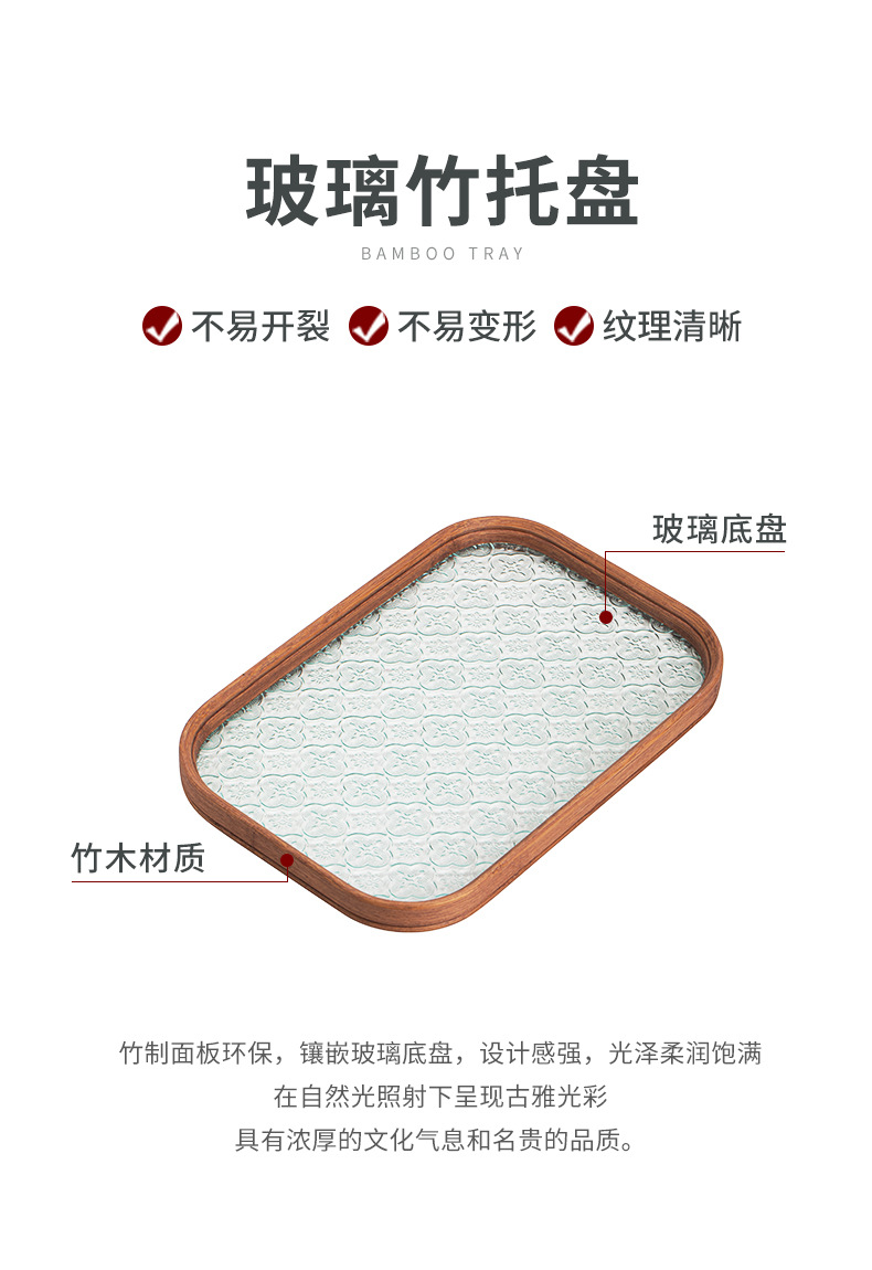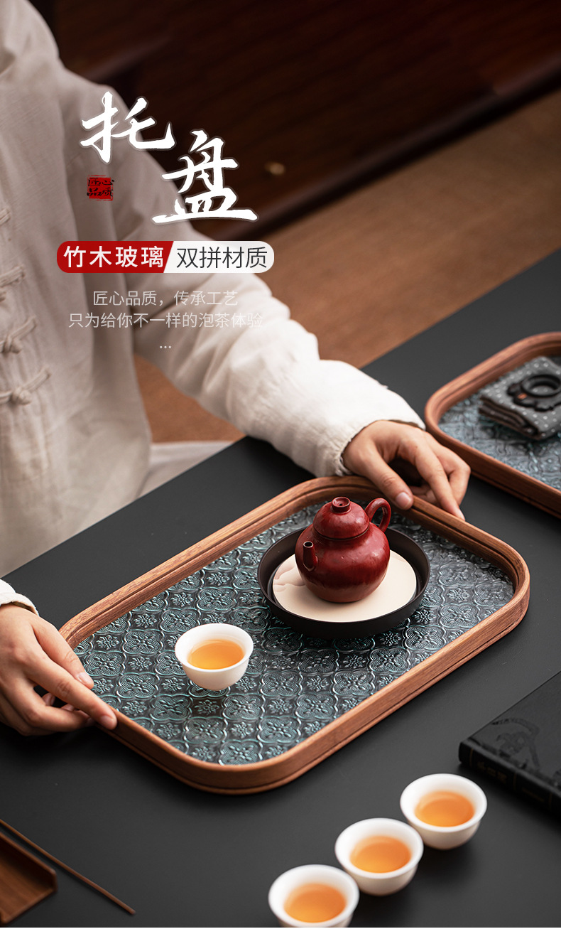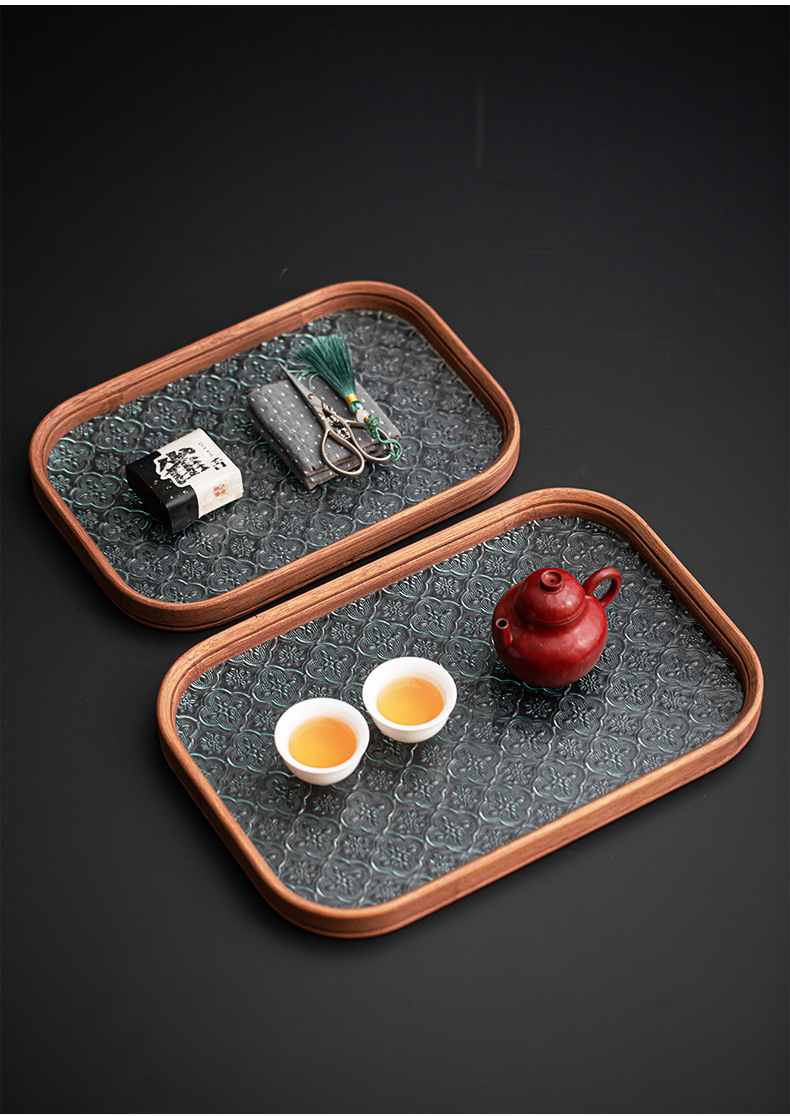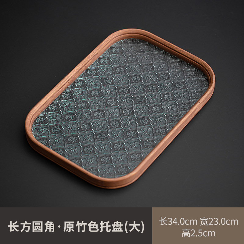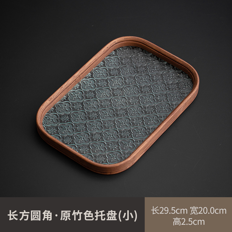 베고니아 꽃 유리 트레이 작은 대나무 차 트레이 중국 스타일 가정용 간단한 상쾌한 트레이 티 세트 컵 보관 디너 트레이
