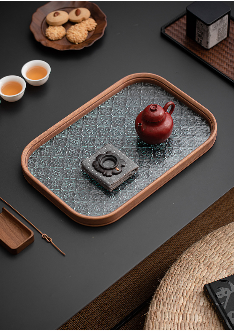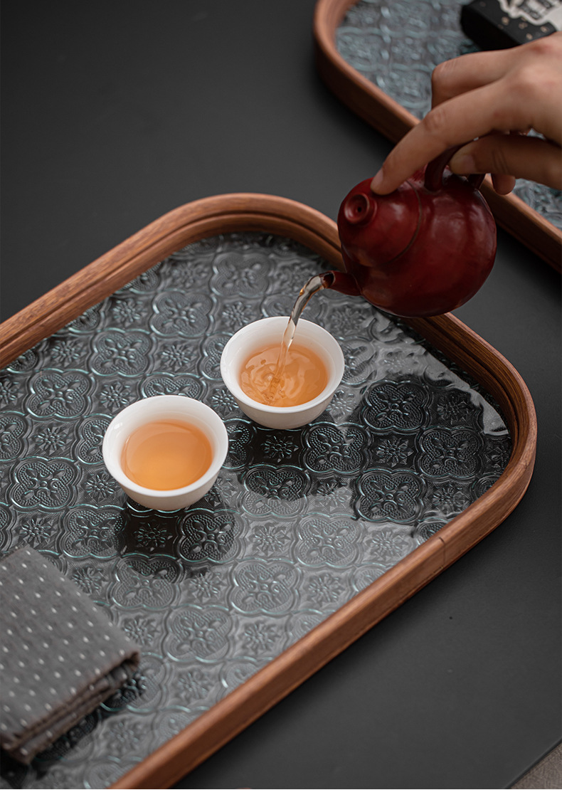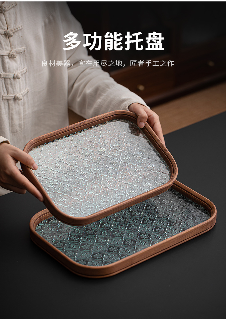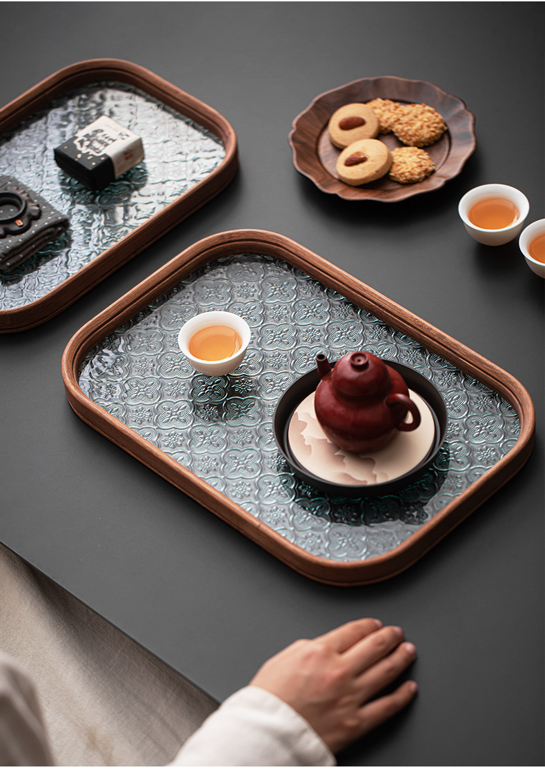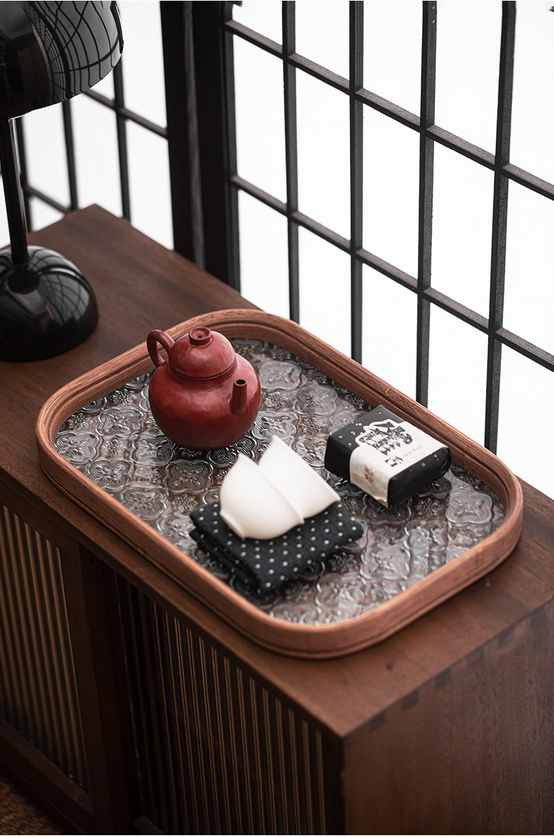베고니아 꽃 유리 트레이 작은 대나무 차 트레이 중국 스타일 가정용 간단한 상쾌한 트레이 티 세트 컵 보관 디너 트레이