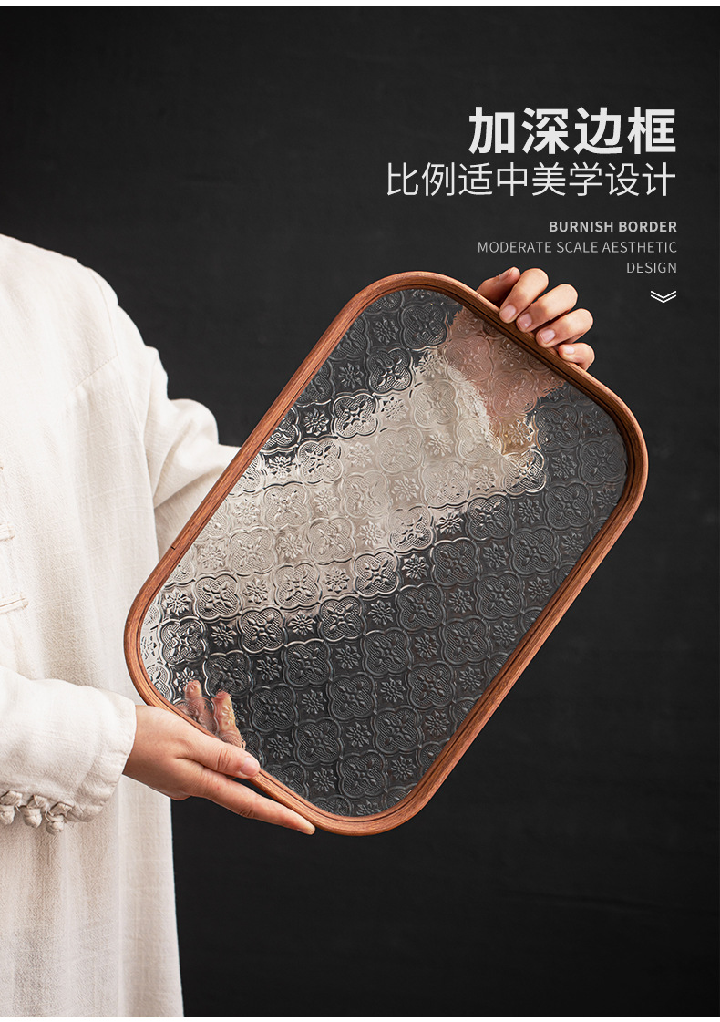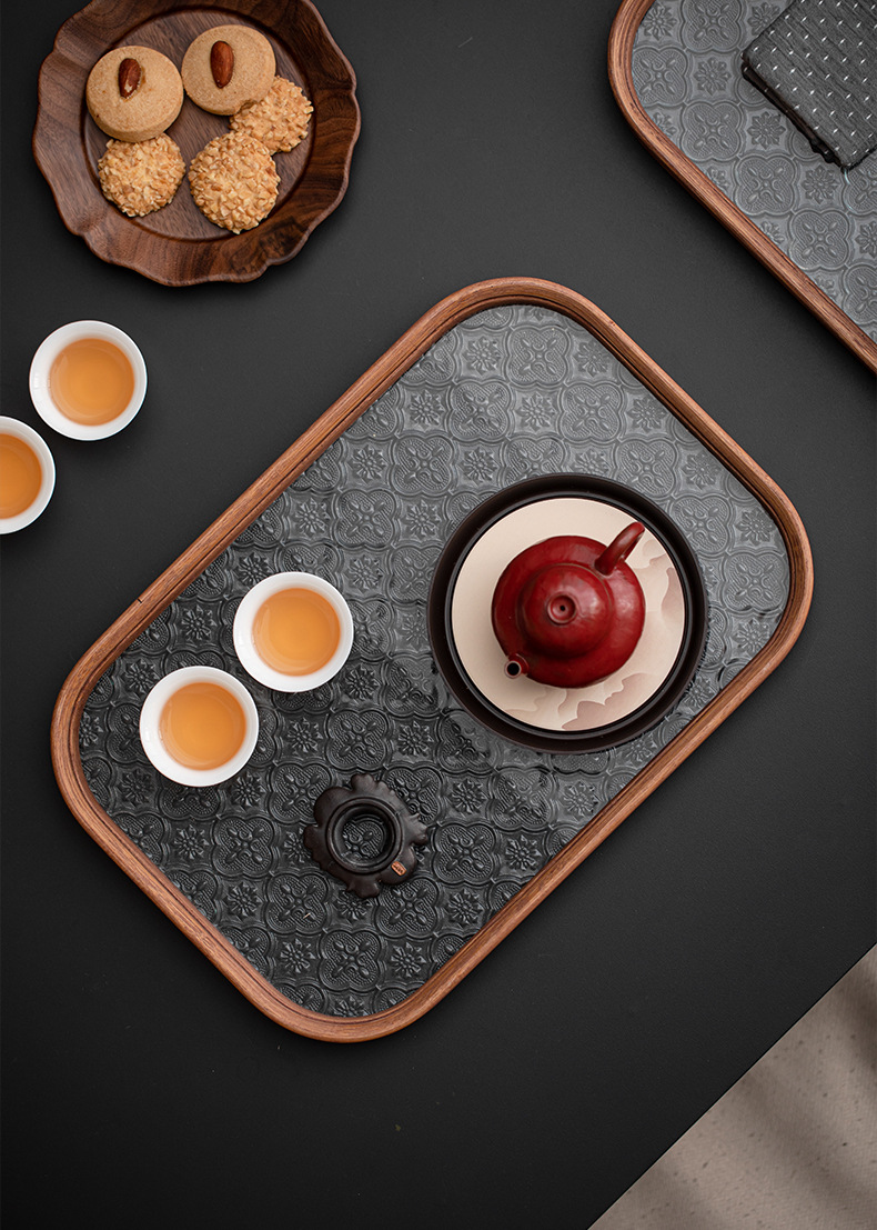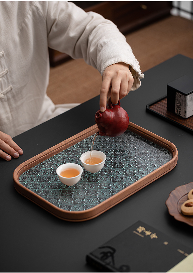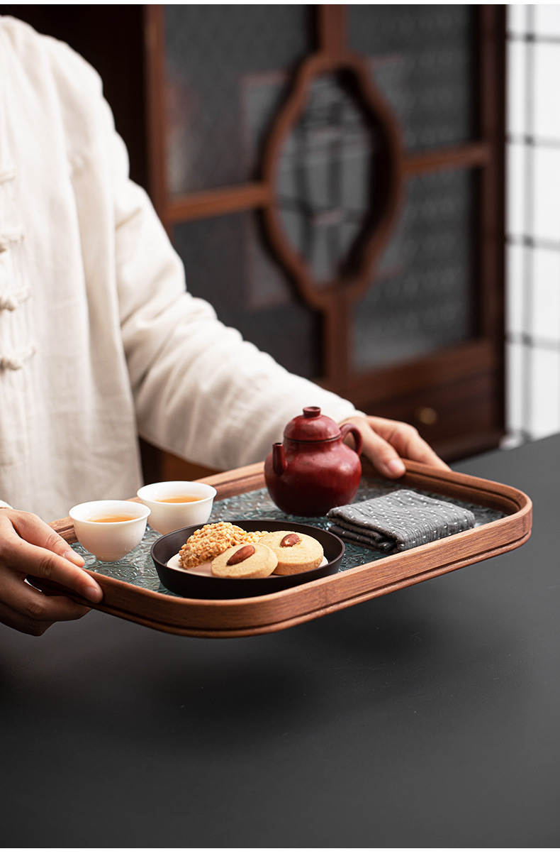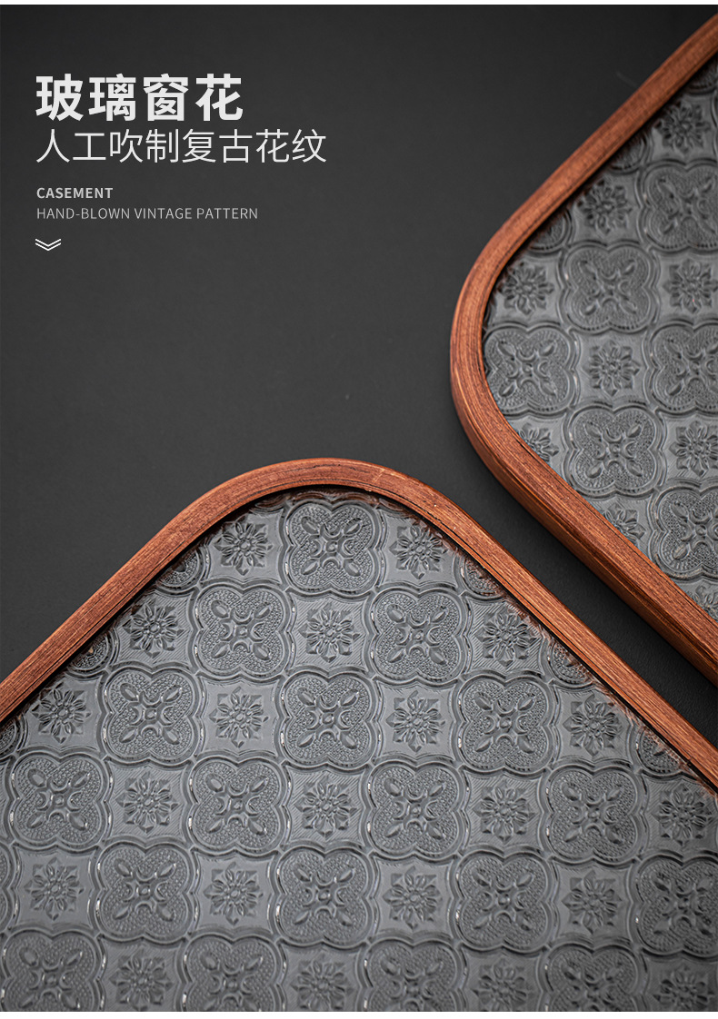 베고니아 꽃 유리 트레이 작은 대나무 차 트레이 중국 스타일 가정용 간단한 상쾌한 트레이 티 세트 컵 보관 디너 트레이
