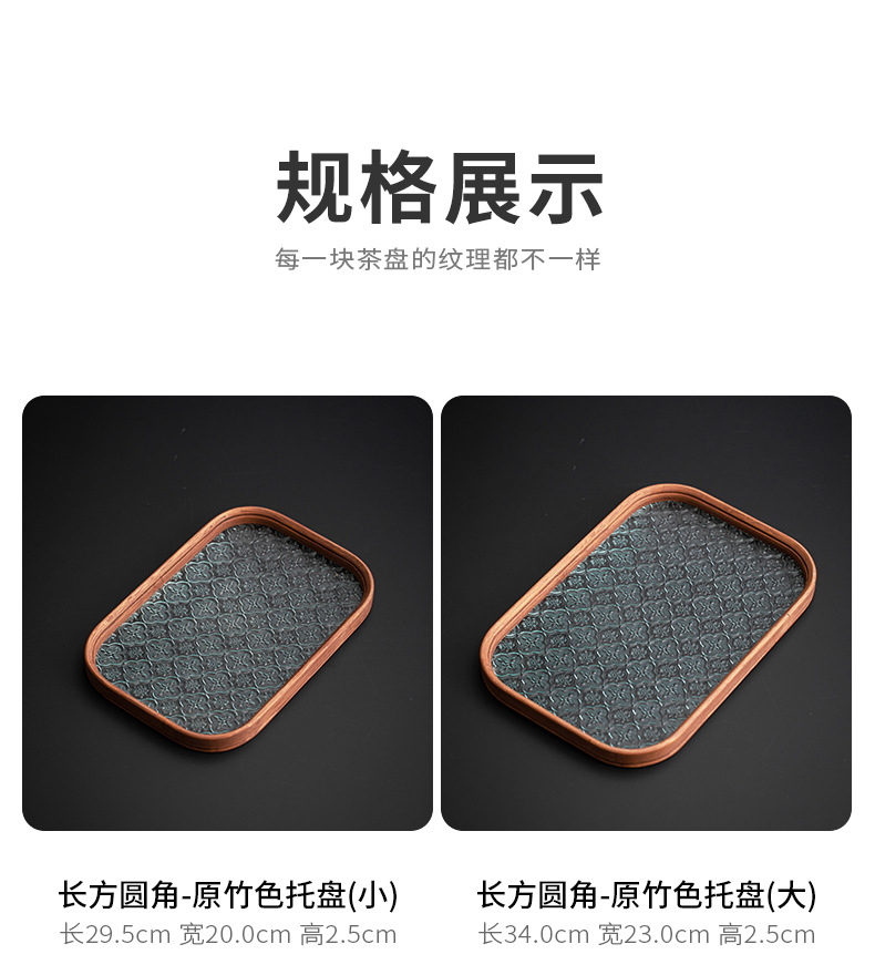 베고니아 꽃 유리 트레이 작은 대나무 차 트레이 중국 스타일 가정용 간단한 상쾌한 트레이 티 세트 컵 보관 디너 트레이스토어 가기