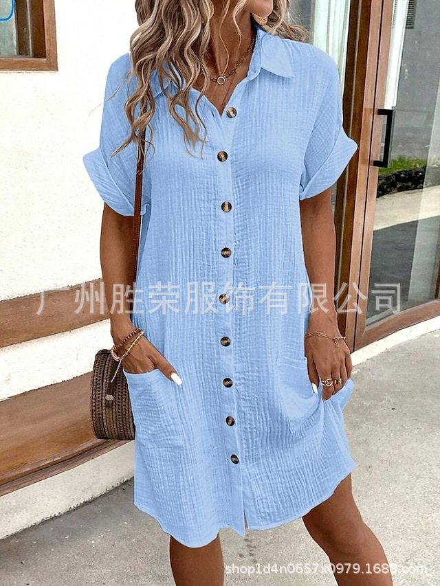 2024 새로운 재고 국경 대외 무역 유럽과 미국 여성 독립 역 봄과 여름 폭발 단색 카디건 포켓 원피스스토어 가기