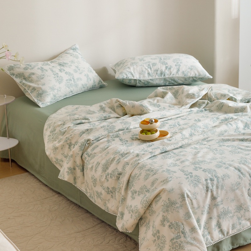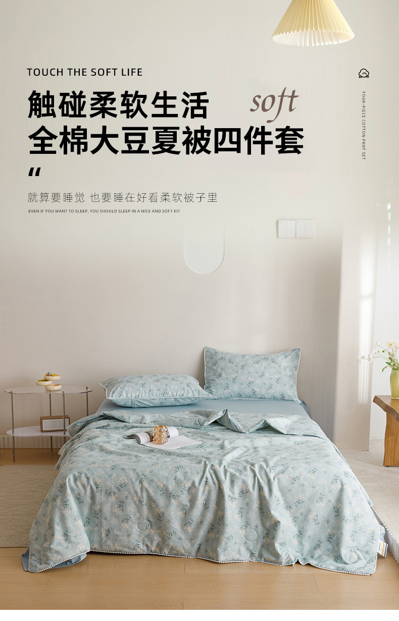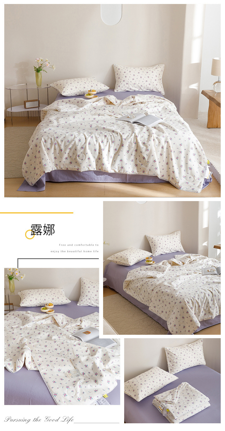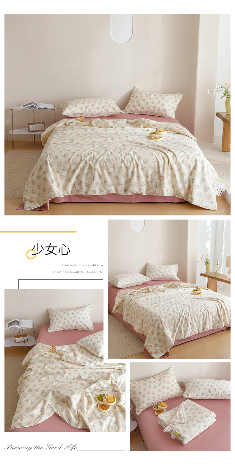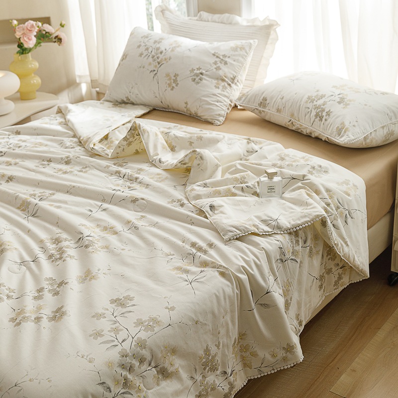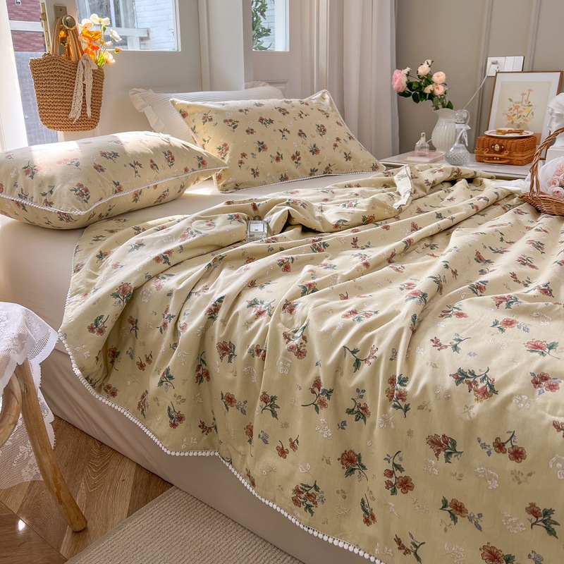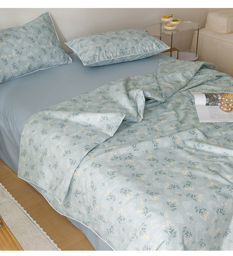 여름 쿨 퀼트 4 피스 코튼 얇은 이불 꽃 여름 이불 기계 세탁기 더블 여름 에어컨 이불스토어 가기