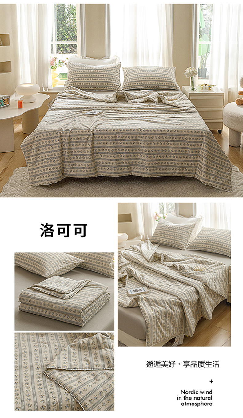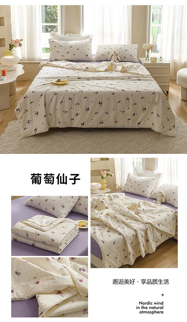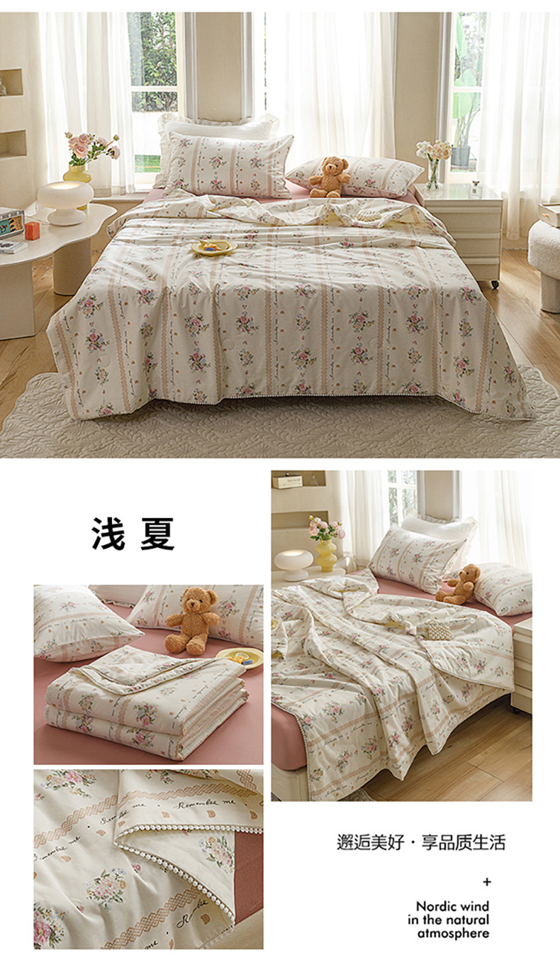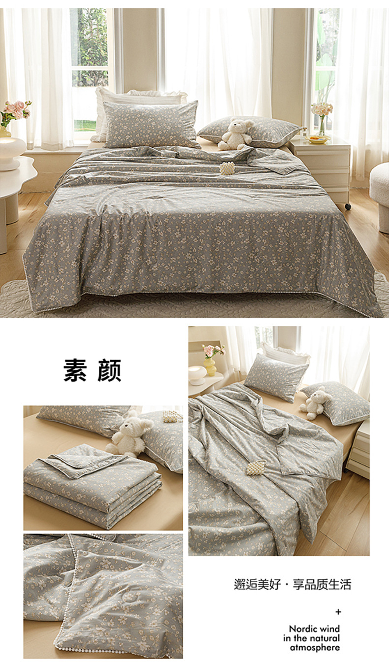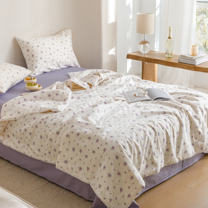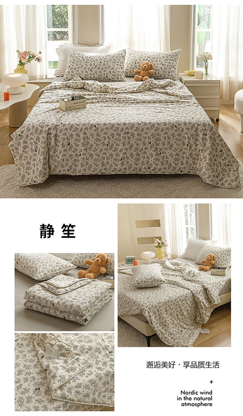 여름 쿨 퀼트 4 피스 코튼 얇은 이불 꽃 여름 이불 기계 세탁기 더블 여름 에어컨 이불스토어 가기