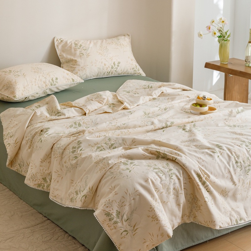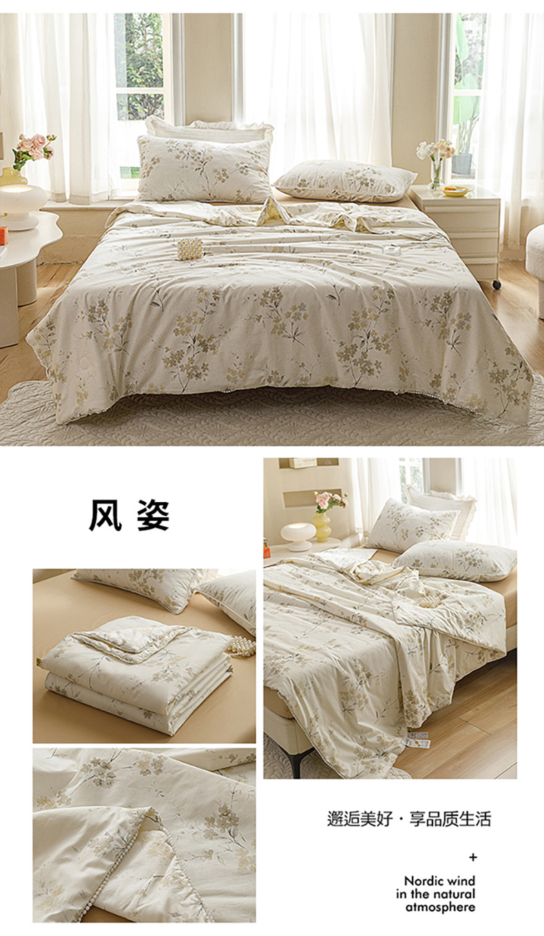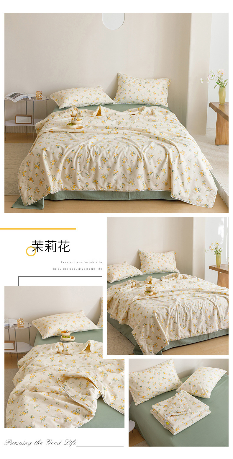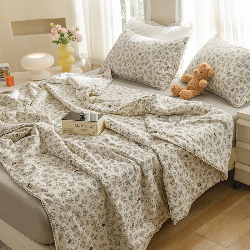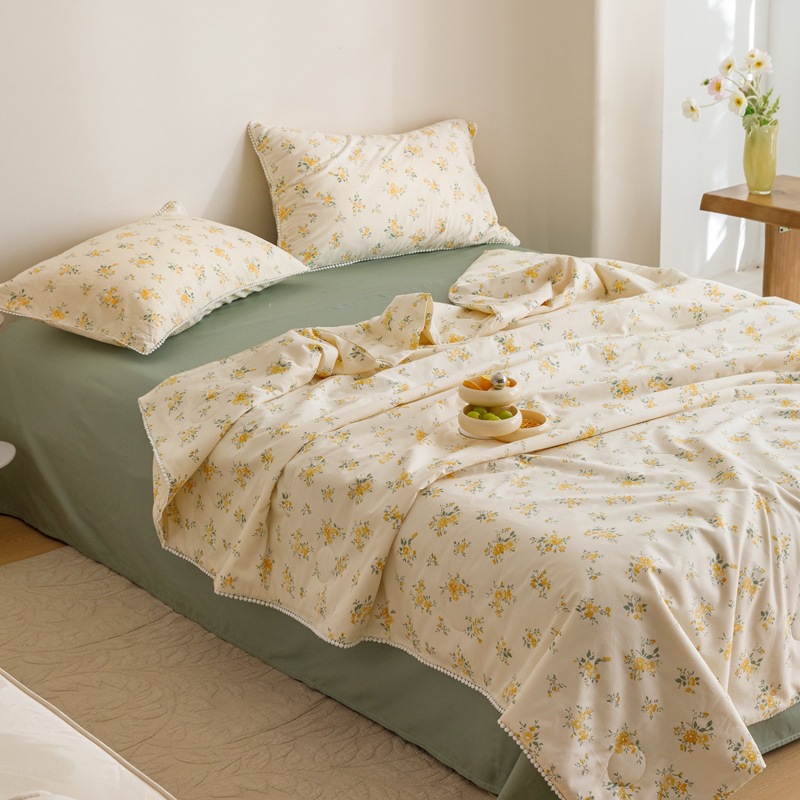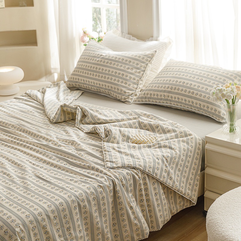 여름 쿨 퀼트 4 피스 코튼 얇은 이불 꽃 여름 이불 기계 세탁기 더블 여름 에어컨 이불