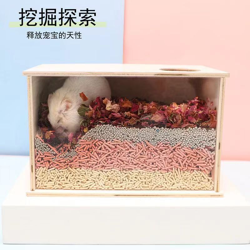햄스터 목조 주택 Kaxi 나무 아크릴 파기 모래 상자 목욕 골든 베어 둥지 대형 심화 플래너 조경 용품스토어 가기