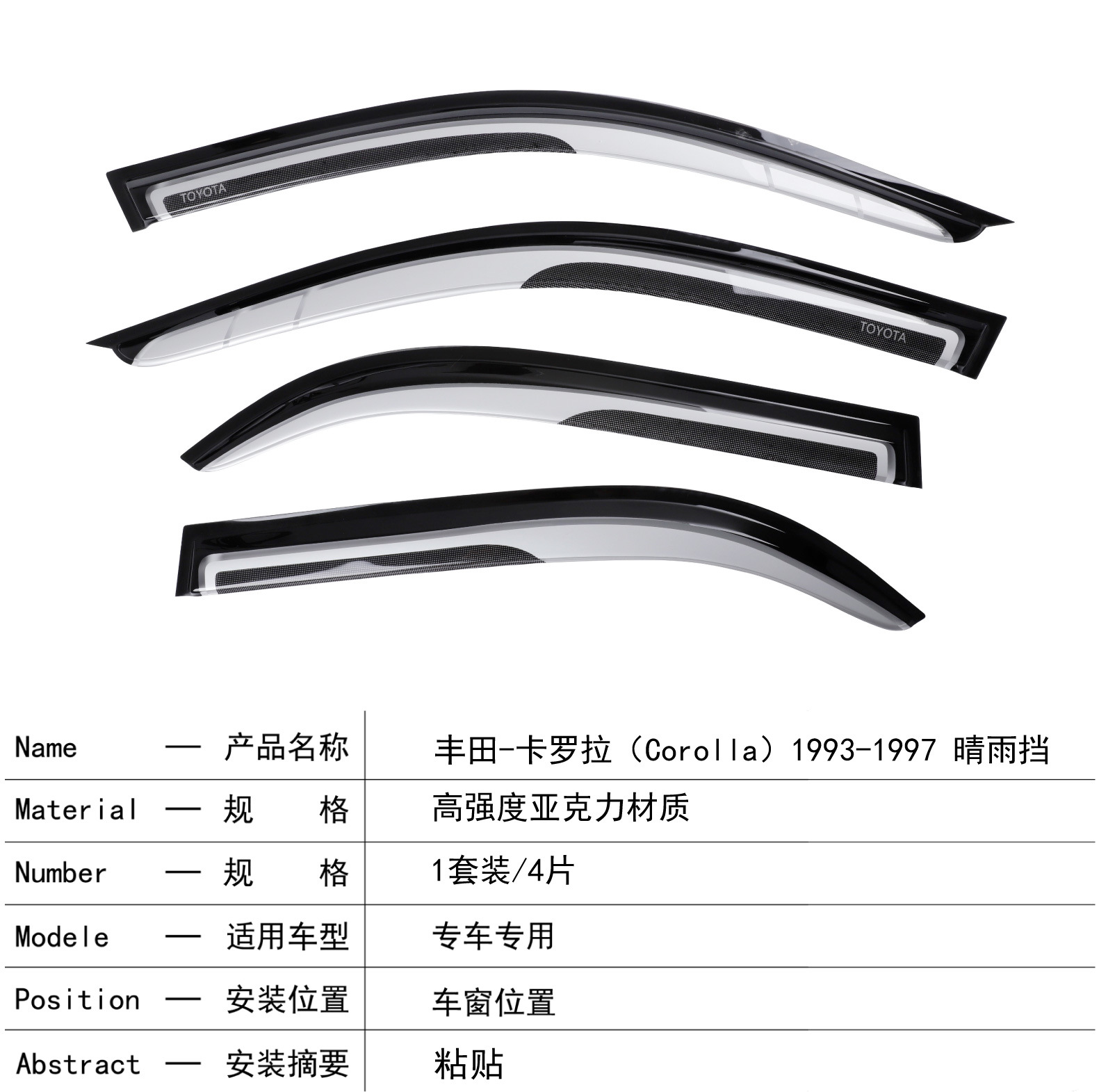 적용 가능한 대외 무역 1988-1997 Corolla Corolla 창 비 방지 2 색 자동차 비 방지스토어 가기