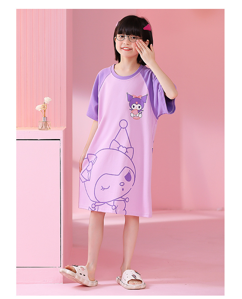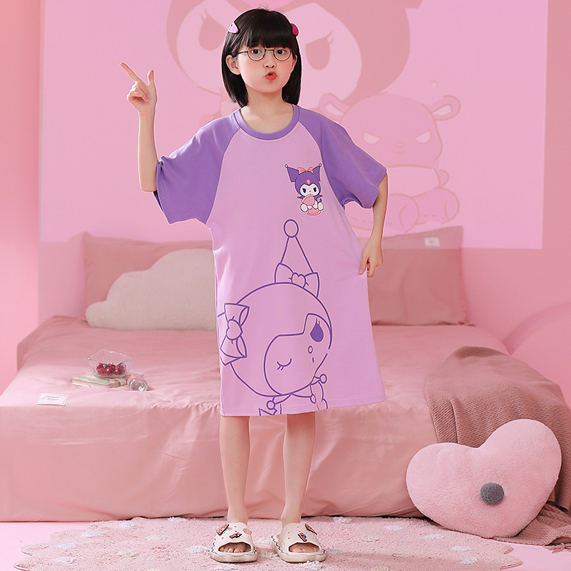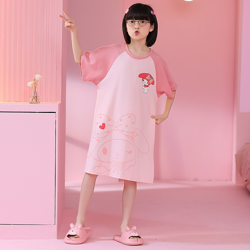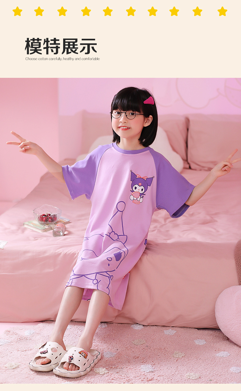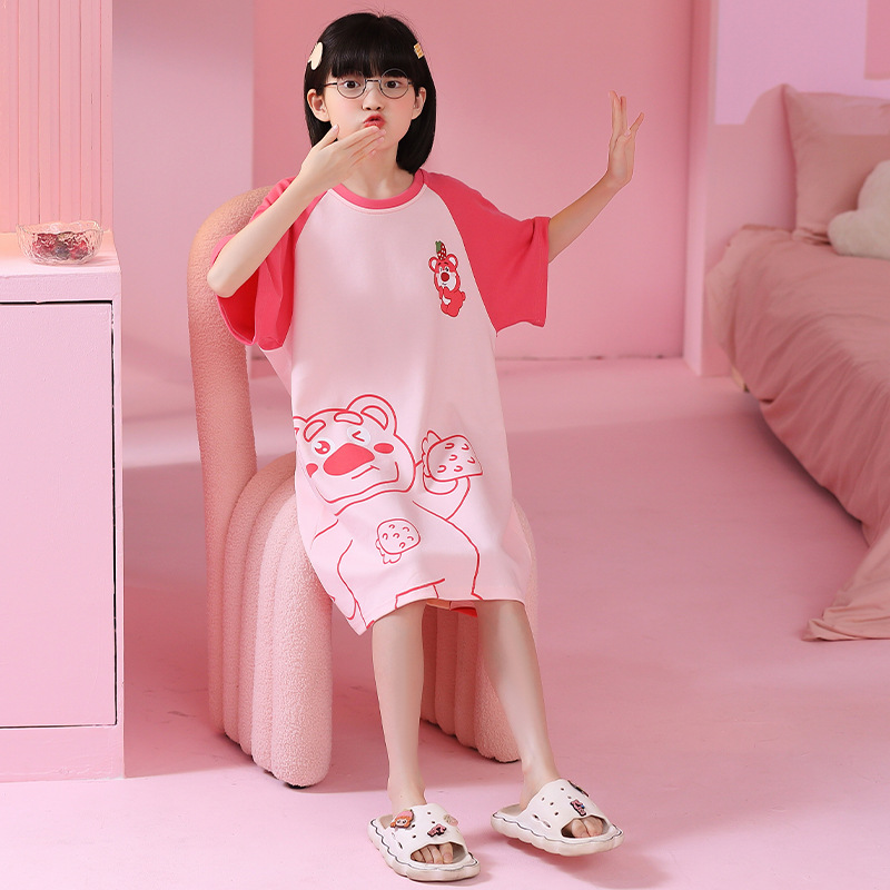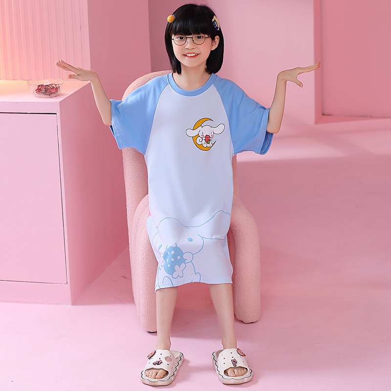 여름 어린이 잠옷 반팔 얇은 만화 소녀의 집 옷 소녀의 큰 어린이 외형 에어컨 옷스토어 가기