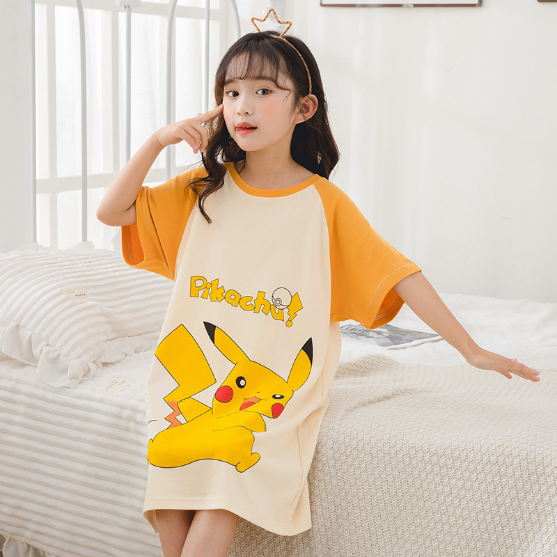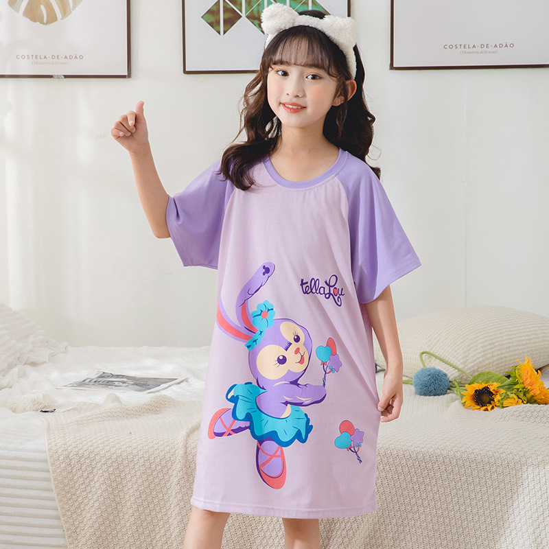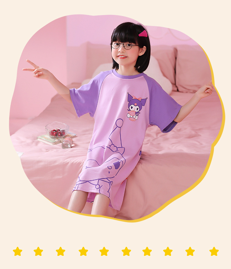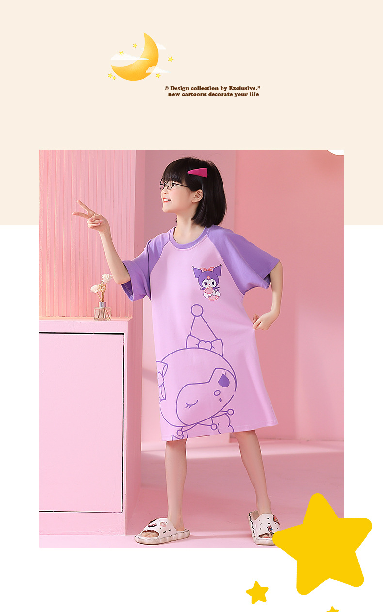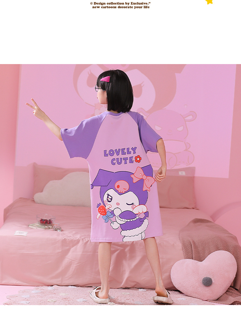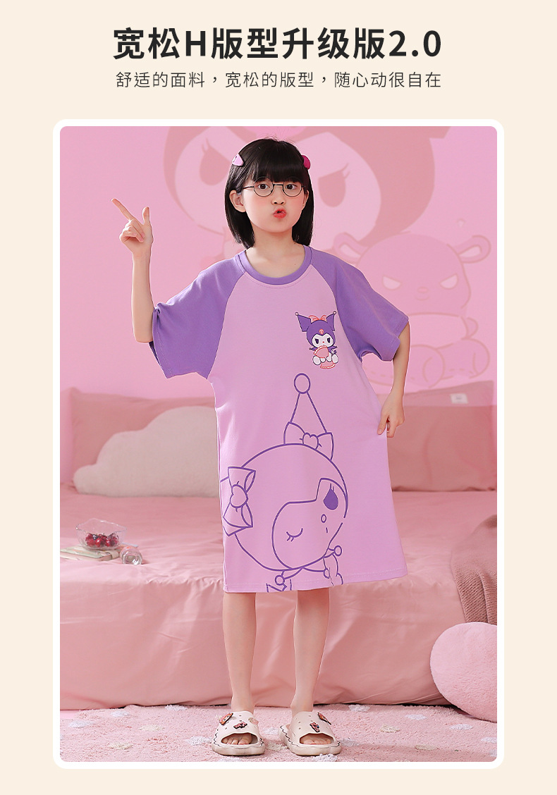 여름 어린이 잠옷 반팔 얇은 만화 소녀의 집 옷 소녀의 큰 어린이 외형 에어컨 옷스토어 가기