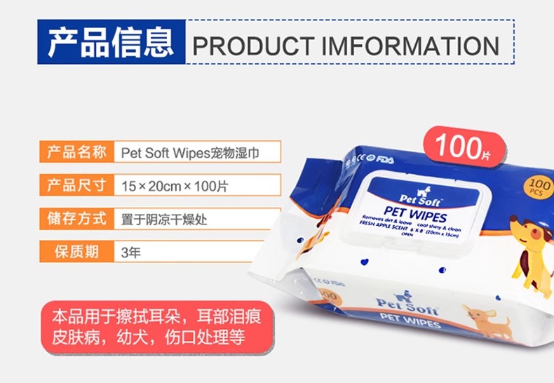독특한 냄새를 제거하는 고양이와 개를위한 애완 동물 부드러운 애완 동물 물티슈 특별한 닦아 눈물 강아지 엉덩이 젖은 티슈 100 조각